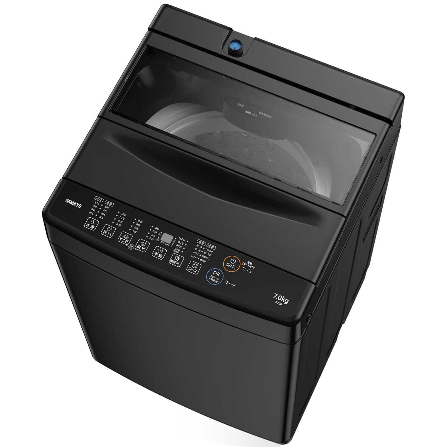 洗濯機 7kg 一人暮らし 全自動 幅51㎝ 最短10分洗濯 透明ガラスドア 槽洗浄 部屋干し コンパクト スリム 予約機能 1-3人用 静音 B700 ブラック
