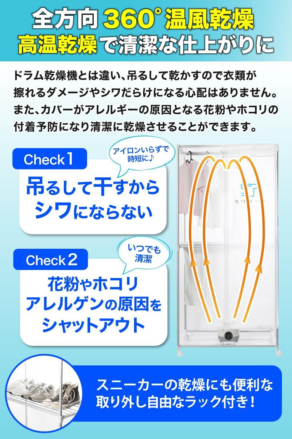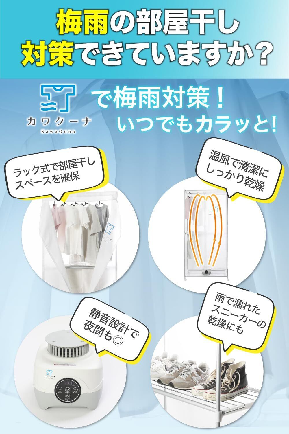 「カワクーナL 衣類乾燥機」は、高性能な機能と使いやすさが魅力です。湿気対策やシワ防止に最適で、衣替えや急な天候変化にも大いに役立つ商品です。