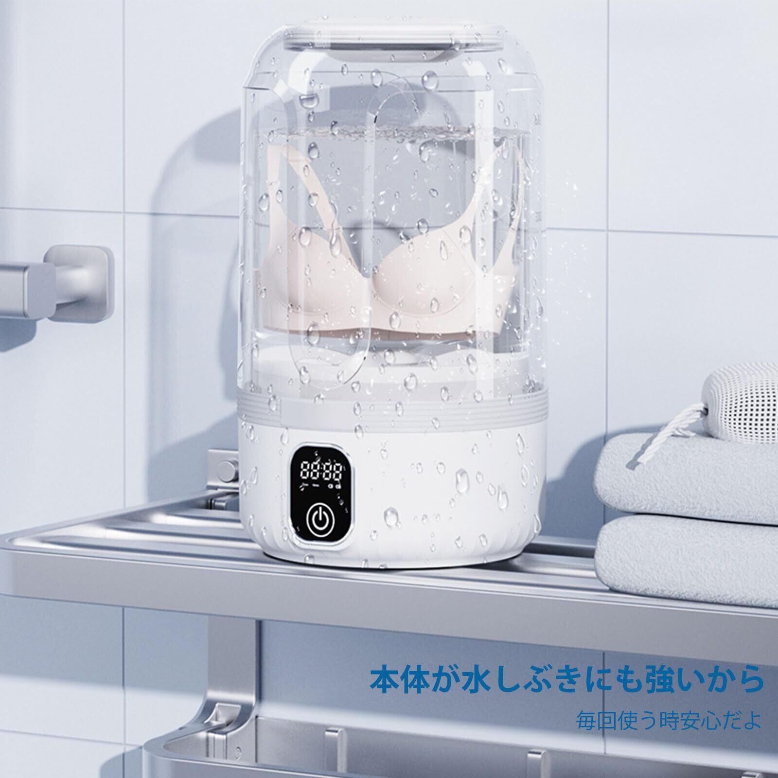 この「小型洗濯機」は、ワイヤレスで使える便利なアイテムです。360°密封構造により、水漏れの心配がなく、安全に洗濯が行えます。特にソックスや下着、赤ちゃんの衣類など、デリケートなアイテムに最適です。