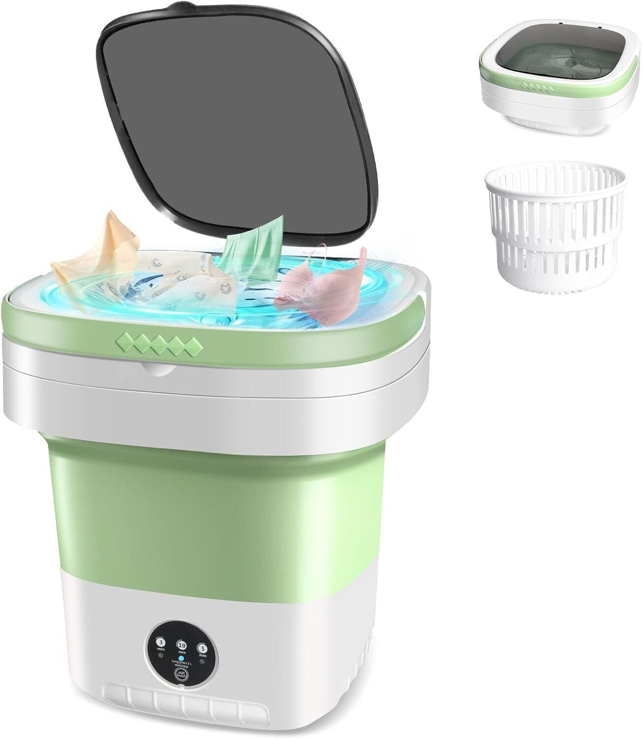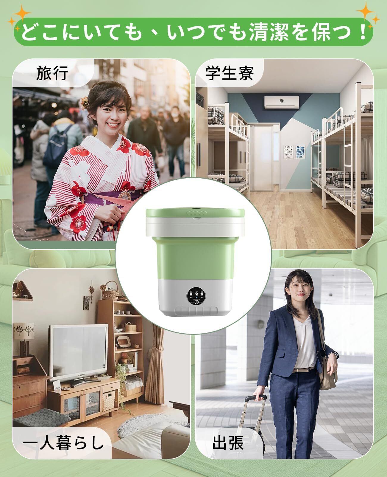 小型洗濯機 ミニ【脱水機能付き・折りたたみ式・12L大容量 】一人暮らし ウォッシュボーイ バケツ洗濯機 折りたたみ 小型 青色光滅菌 全自動洗濯 コンパクト 折り畳み 高性能 消臭 肌着 ベビー服 タオル アパート 自宅 旅行 (緑)