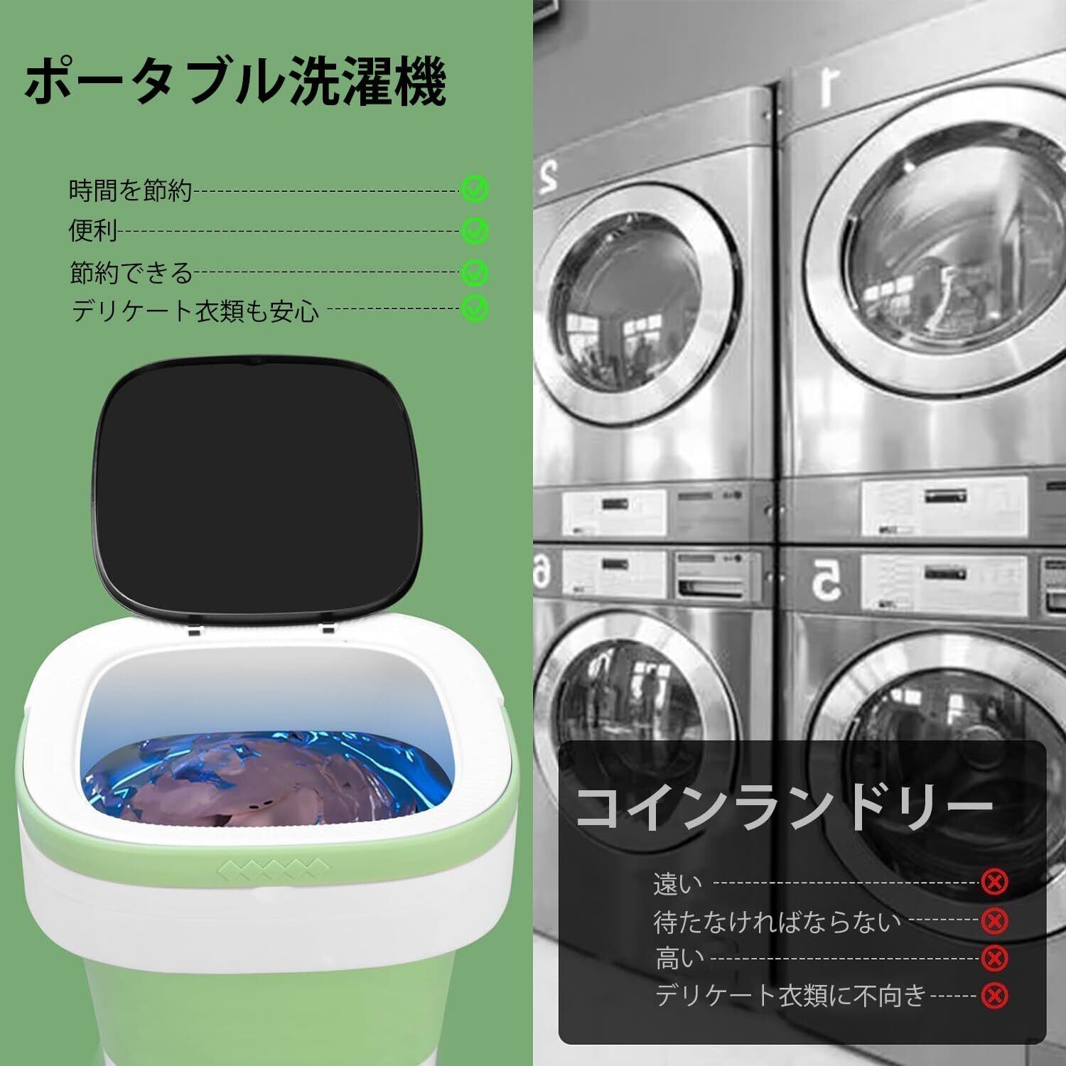 【持ち運べる“日常用セカンド洗濯機”】折りたたみ式×本体約1.8kgで、部屋間の移動や旅行・キャンプ・寮生活に最適。12Lの洗浄槽は、下着・靴下・ベビー服・タオルなどの小物やデリケート衣類の分け洗いに便利です。共用ランドリーの順番待ちや手洗いの負担を軽減します。