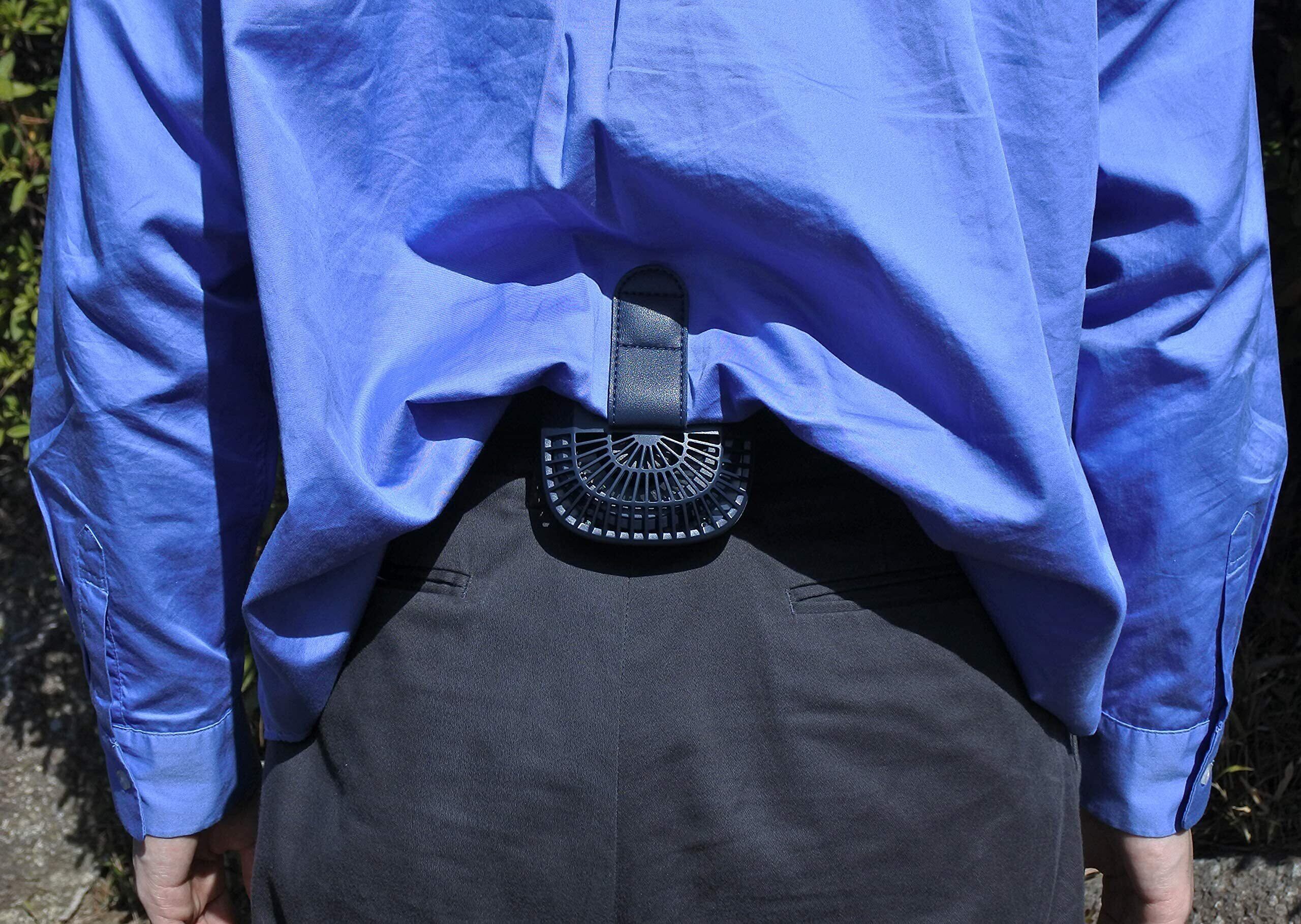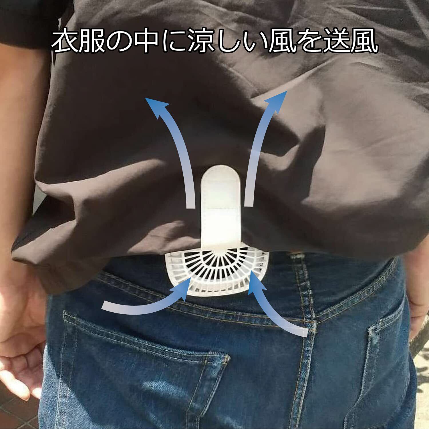 【ベルトクリップ】ウエストのベルトにクリップで取り付けて、衣服内へ送風することができます。リュックのショルダーベルトに取り付けての使用も可能です。