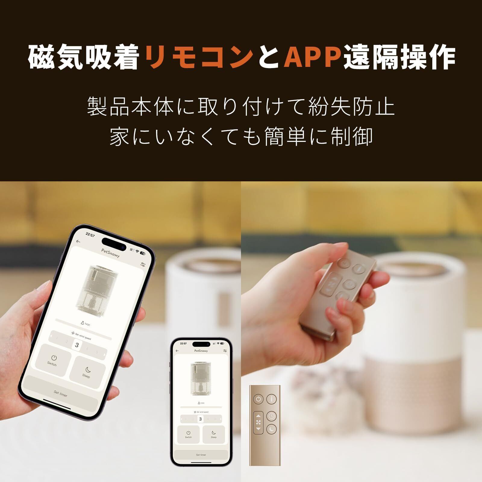 この小型空気清浄機は、ペットを飼う家庭に最適な機能を多数搭載。清潔で快適な生活空間を実現し、あなたのペットとのひと時をより良いものにします。