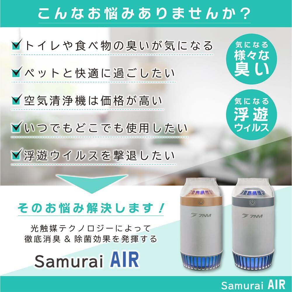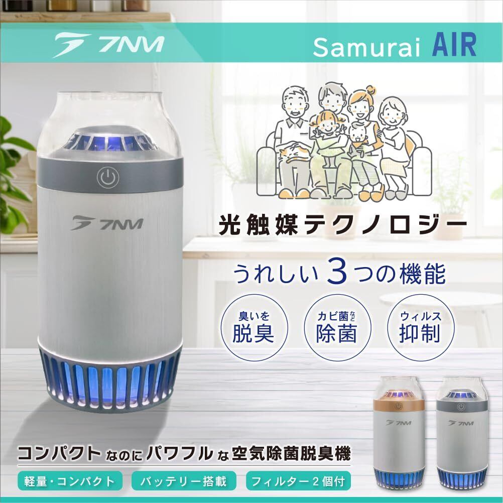 【日本ブランド】空気清浄機 小型 7NM SAMURAI AIR 車載 脱臭 除菌 光触媒 花粉 ペット ウイルス抑制 アレルギー 匂い カビ オゾン 軽量 卓上 ポータブル トイレ 玄関 ポータブル HEPA フィルター付属 (Silver)