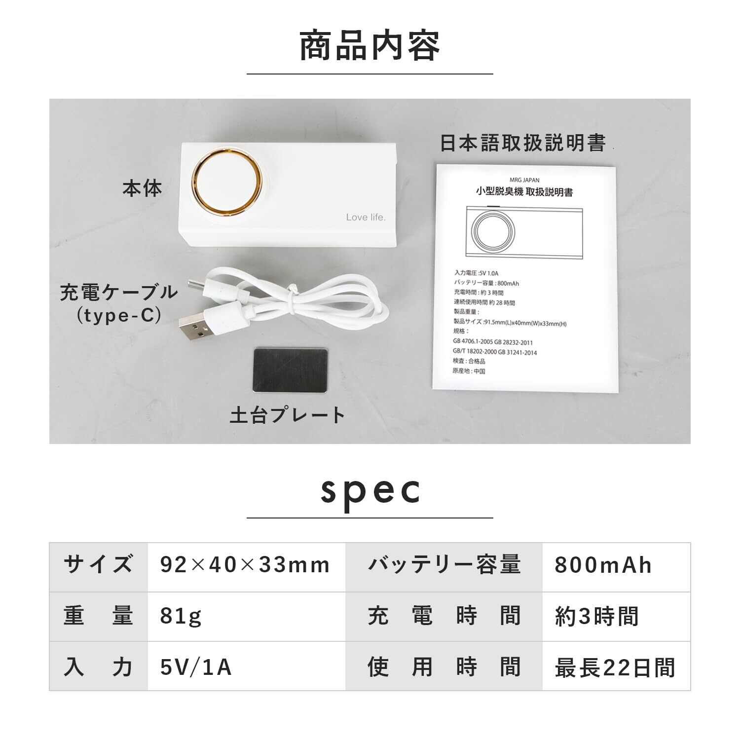 【仕様】連続使用時間:25時間/バッテリー容量:800mAh/入力電圧:5V/1A【素材】ABS+マグネット【サイズ】92×40×33mm【商品内容】充電用USBコード/マグネット土台シール/日本語取扱説明書