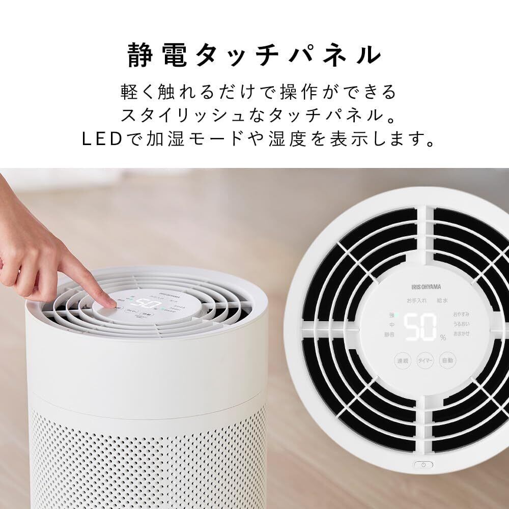 このアイリスオーヤマ加湿器は、4Lの大容量タンク、550ml/hの強力加湿、分解丸洗い可能、上から給水できる便利なデザインなど、多彩な特徴を備えています。リビングや寝室、オフィスなど、さまざまな日常シーンで活躍します。