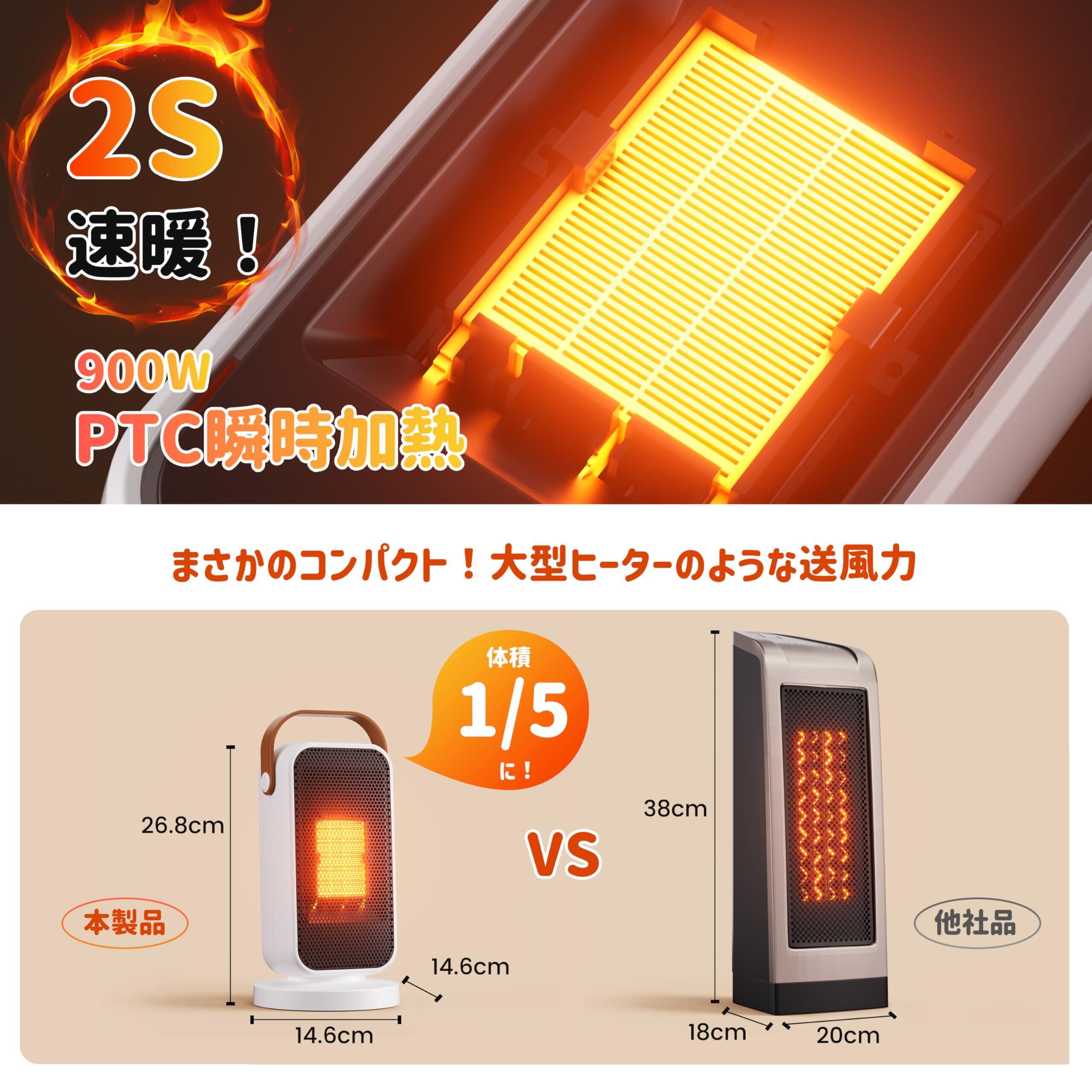 【2025年新進化!2秒即速暖・省エネセラミックヒーター】本製品は高い熱変換効率を誇るPTCセラミックを採用。スイッチONから約2秒という驚きの速さで温風が吹き出します。朝の身支度や寒い帰宅後など、「すぐに暖まりたい」瞬間にぴったり。わずか820gの軽量・コンパクト設計でありながら、大型ヒーターのような強力な温風を実現。リビングはもちろん、書斎や洗面所など、必要な場所にさっと移動できて便利です。自然風(5W)/中温(500W)/高温(900W) の3段階切替で、シーンに合わせて効率的に省エネ。環境にも家計にもやさしい、スマートな暖房で、快適な冬をお過ごしください。