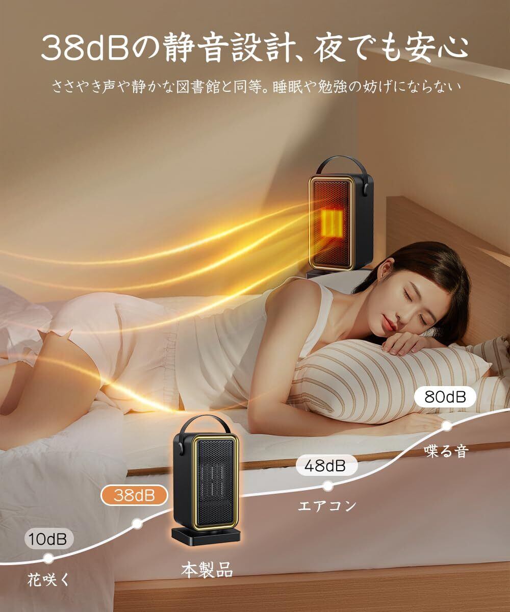 ⑤ 【軽量・静音&持ち運び便利】 本体は 約635gの超軽量 設計で、取っ手付きで持ち運び簡単。 静音運転(低騒音設計) により、読書・勉強・仕事・睡眠の邪魔をしません。 デスク下 / ベッドサイド / 洗面所 / トイレ / オフィス / 寝室 / 一人暮らし など、どこでも手軽に使用可能。 コンパクトヒーター / ポータブルヒーター / 足元ファンヒーター として、生活空間を快適に保つ1台です。