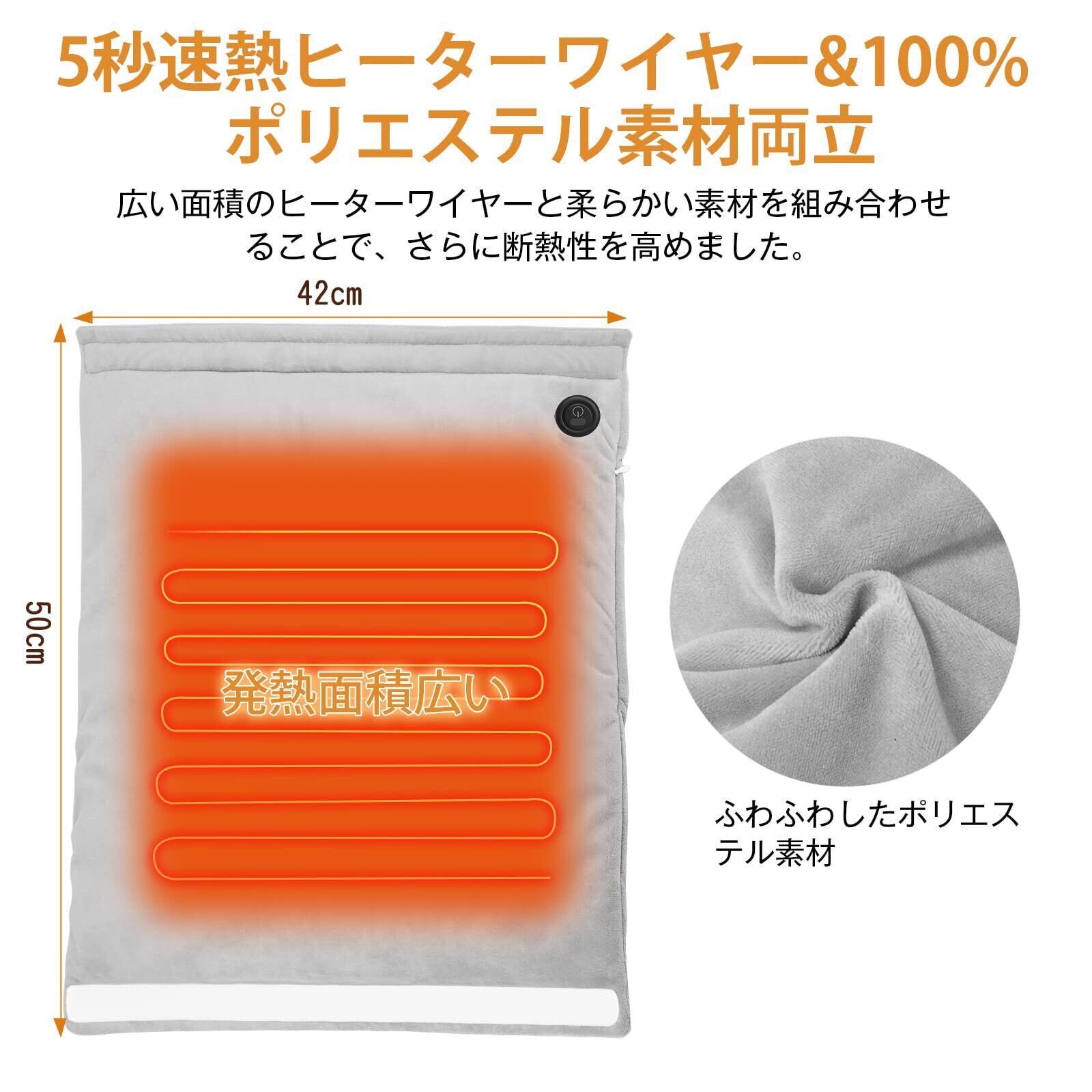特徴 省エネ/お湯不要/ 5秒速暖/65℃発熱可能/両面発熱3段温度調節/携帯便利/43X33CM/携帯便利/洗濯可能