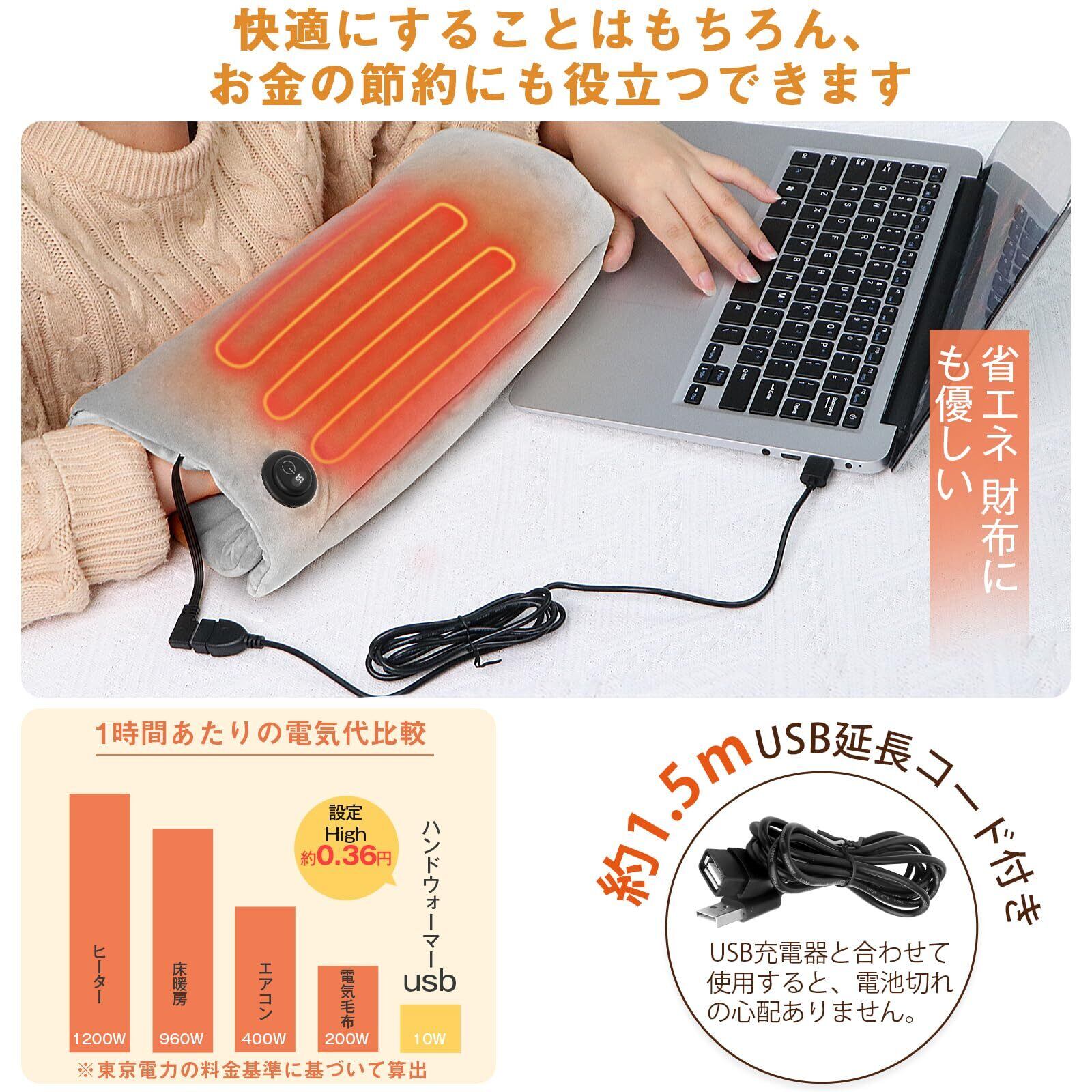 しっかりと暖める一方で、エネルギーの無駄を省く省エネ設計です。お湯を使わずに済むため、手軽さと経済性を両立させています。さらに、USB延長コードが付いているので、好きな場所での使用が可能です。