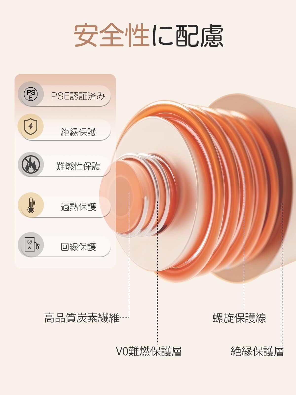 【暖かさと安心感の二重満足・PSE認識済み】ミニ電気マットは暖かさが満ちるだけでなく、心からの安心感も与え、冬のくつろぎを二重に満足させます。加熱ワイヤーは安全性と過熱防止機能が万全で、過電圧保護、過電流保護、短絡保護、過熱保護などはしっかり設定されますので、長時間のご使用も安定です。このホットマットもPSE 認証を厳格に通過し、権威ある品質基準を満たしています。