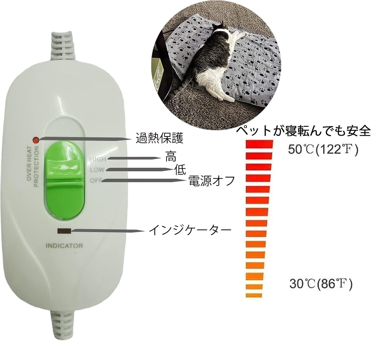 【過熱保護】:温度設定機能、自動電源オフ機能付き。設定した温度に達ち/過熱/電圧異常の場合は自動的に電源を切ります。過熱防止、噛み防止、感電防止、水漏れ防止、24時間ペットの安全を守ります。