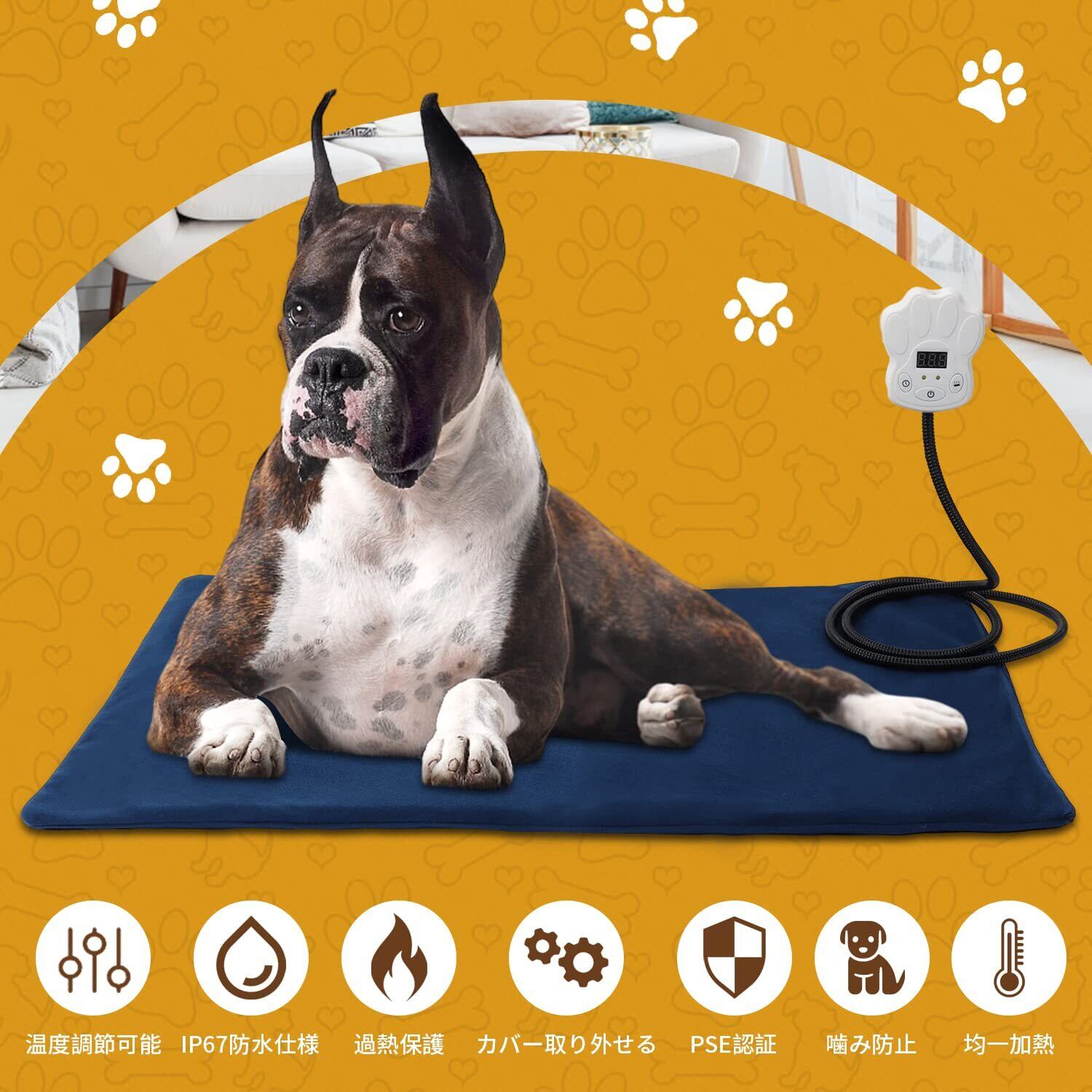 ペット用ホットカーペット 65*40cm ペット用ヒーター 4段タイマー機能 過熱保護 6段階温度調節 電気ヒーター 両面加熱 室内外での使用 猫 暖房器具 PSE認証 噛み付き防止