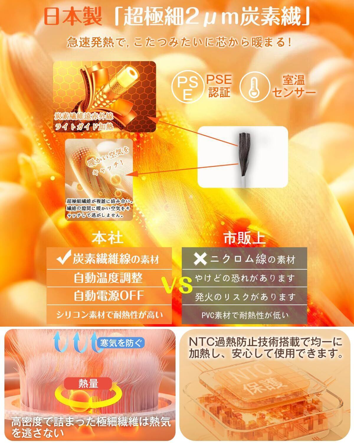 【日本製炭素繊維ヒーター&PSE認証済み】電気毛布の安全性も重要な研究課題である。電気毛布は日本製炭素繊維加熱線を採用、優れた導電性や導熱性を実現し、電源オンにすると、すぐじんわりと暖かくなります。布団に入った瞬間、温かさが身体を包み込み、あなたの寒さをジャストフィットします!NTC過熱防止技術を搭載し、均一加熱、過熱保護、過圧保護、難燃保護、安心で快適な睡眠をサポートする。また、日本の電気用品安全法のPSE認証を取得しており、厳格な安全基準もクリアしています。信頼性と品質にこだわった電気毛布です。