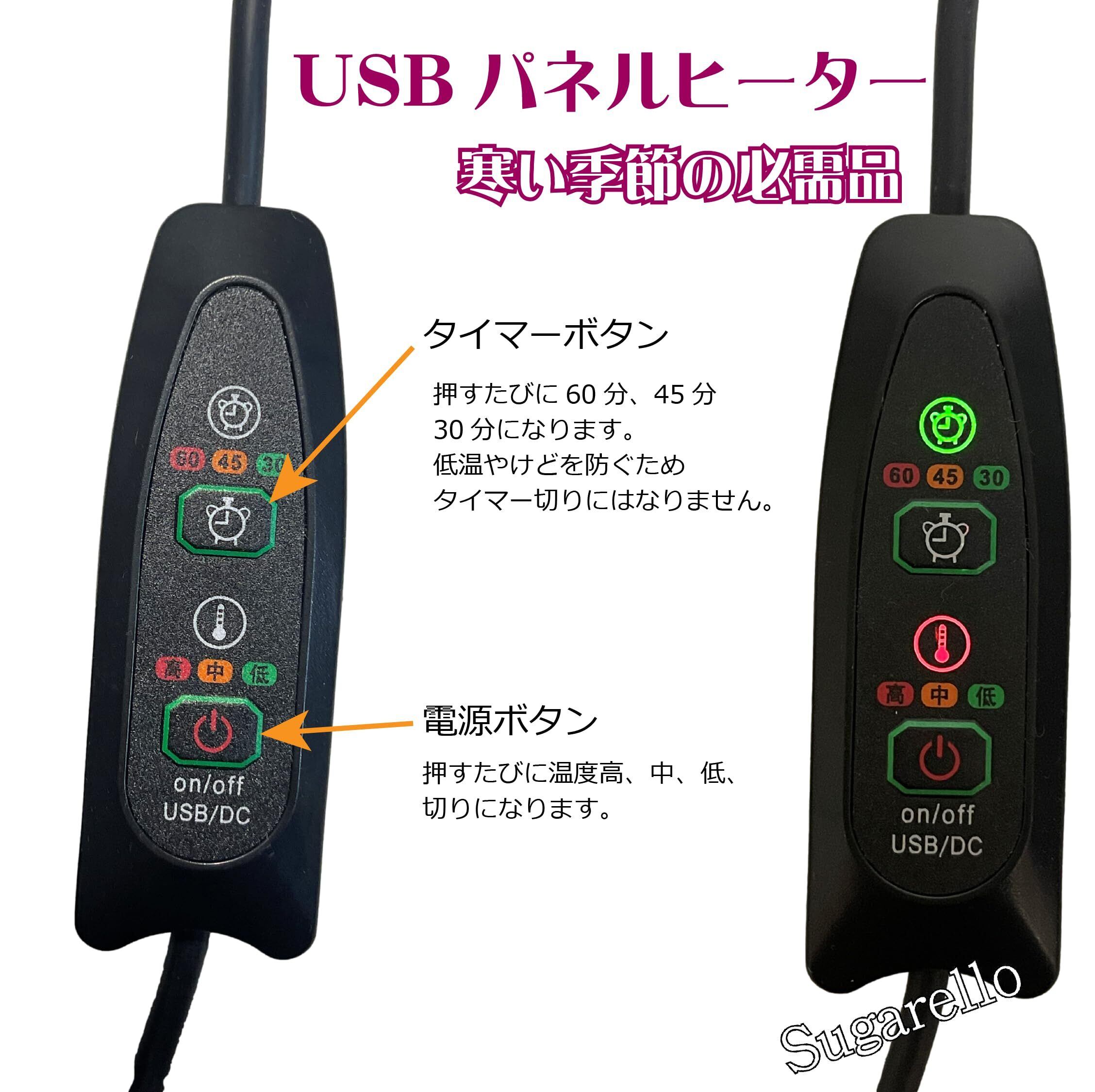 Sugarello USBヒーター 発熱シート DC5V あんか カイロ 足元暖房 3段階温度調整 過熱保護 タイマー機能 防寒 あったか 防水 5V/2A 炭素繊維+不織布 ブラック (1セット)