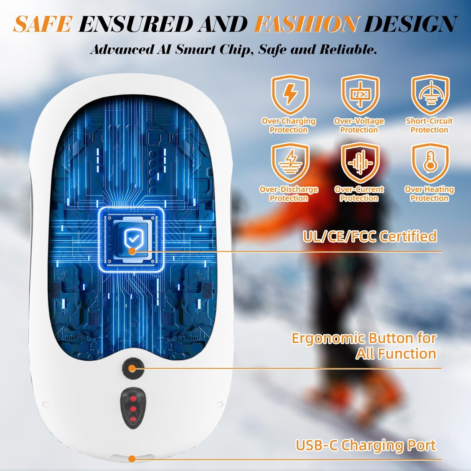 【超安全素材】電気カイロは、高品質のアルミ合金、ABS、耐熱PC素材を使用しており、いずれも安全充電装置の認証に合格しています。さらに、充電式カイロは、過負荷と放電、過電圧、過電流、過熱、および短絡を効果的に防止できるインテリジェントな保護システムを提供します。