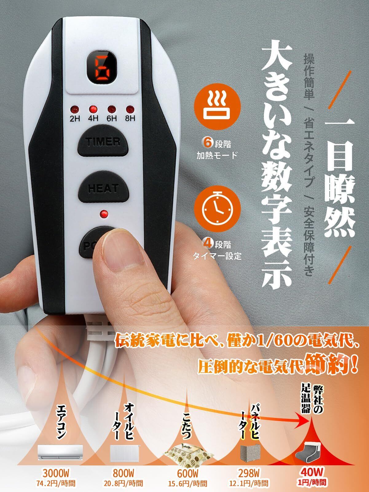 Uner®【看護師監修】 足温器 フットウォーマー 足元ヒーター コンセント式 6段階温度調節 タイマー付き 省エネ 電気足入れヒーター 過熱防止機能 速暖 冷え症対策 フットヒーター 洗濯可能 男女兼用 家庭用 オフィス 寮用 PSE認証済 省エネ (L)