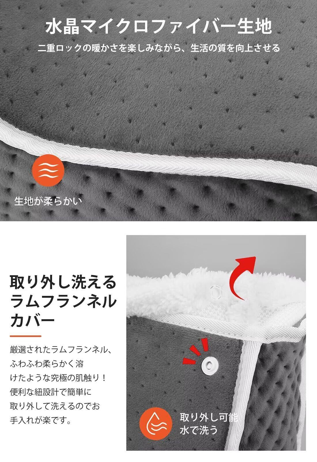 【タイマー4段階 安全で安心】タイマー機能は4段階で調整でき、過熱や短絡保護と組み合わせることで、より安全で安心して使用できます。タイマーは2時間、4時間、6時間、8時間の中から自由に選択できます。設定した時間になると、電源が自動的に切れます。夜寝る前にタイマーを設定しておけば、うっかり電源を切るのを忘れても安心です。さらに、サーモスタットや過熱保護機能も搭載されており、特別な難燃性素材も使用されており、温かさと安全性を両立させています。製品はPSE認証済みで、安全に使用することができます。