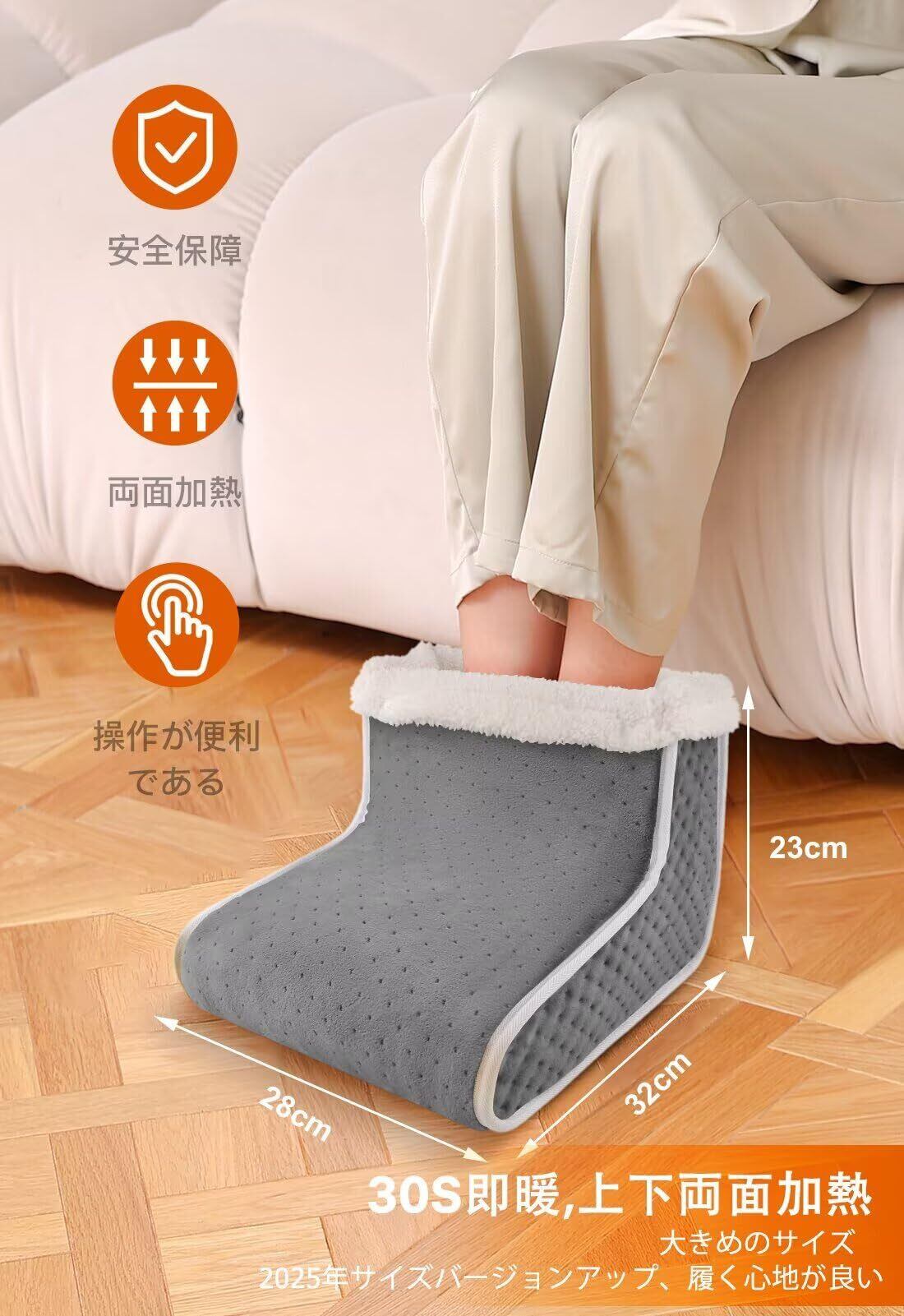 【高級生地&取り外しカバー 保温・清潔に保つ】このフットウォーマーは高級な生地を使用しており、繊細な触り心地と長持ちする保温性を兼ね備えています。取り外し可能なフットカバーは洗濯が可能で、手入れも簡単で常に清潔に保つことができます。ブーツ型のデザインで、ふくらはぎまでカバーし、足先から全身に温かさを広げます。サイズは32×28×23cmで、男性でも女性でも自由に使用できる電気足温器です。