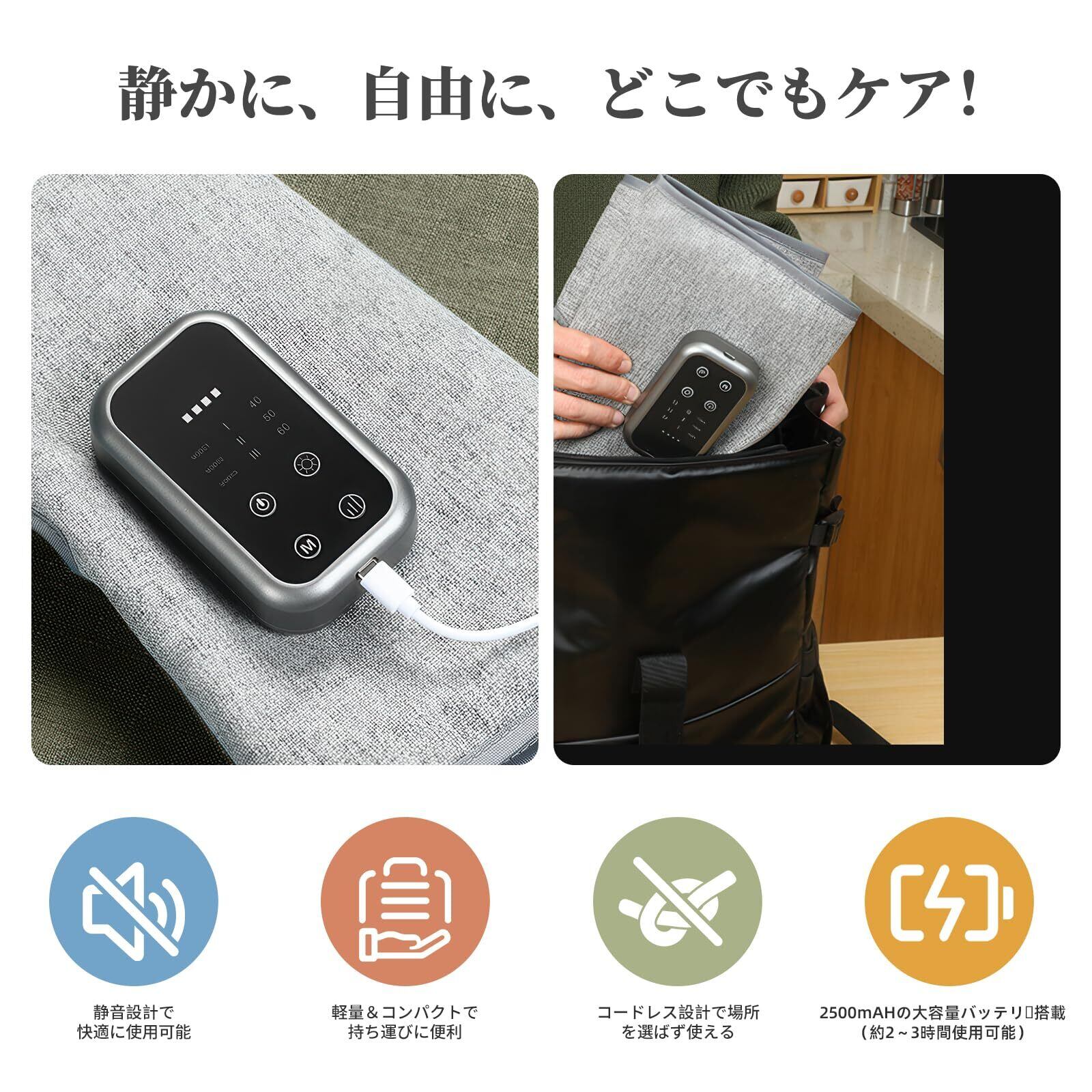 ふくらはぎケア 空気圧 温熱機能 3モード調整 静音設計 軽量コードレス 充電式 男女兼用 自動オフタイマー 家庭用 母の日 父の日 誕生日 敬老の日 ギフト プレゼント (2個セット)
