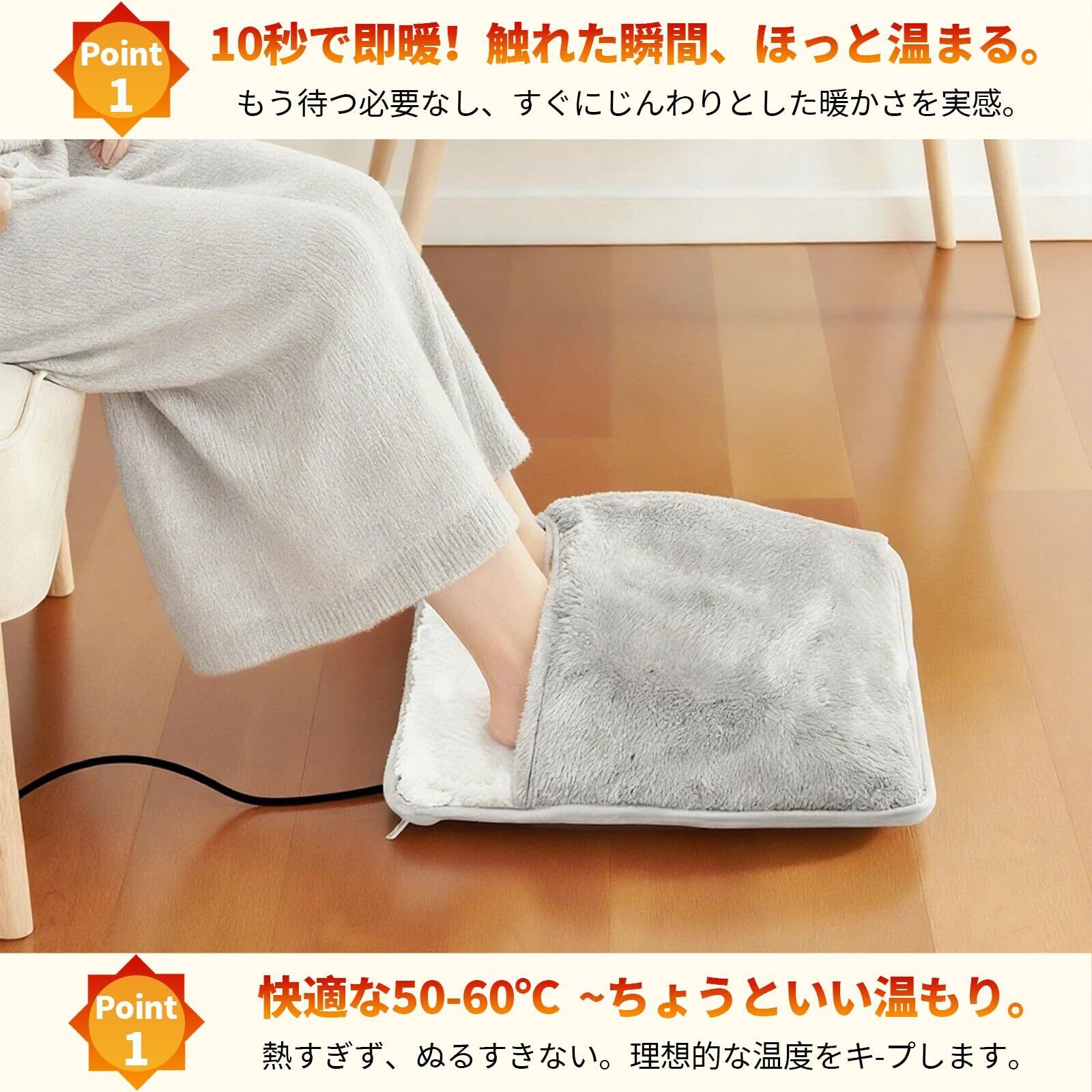 【10秒速暖&AI温度制御で快適なぬくもり】USBを接続するだけで、わずか10秒でじんわりと温まる電気足温器。内蔵の発熱フィルムが安定した熱を供給し、AI温度制御により約50〜60℃の一定温度をキープ。低温やけどを防ぎながら、足元から体全体を心地よく温めます。「usb フットウォーマー」「足元 ヒーター」「足を温めるグッズ」をお探しの方に最適。冷え性の方や長時間デスクワークをする方にもおすすめの冬季あったかグッズです。