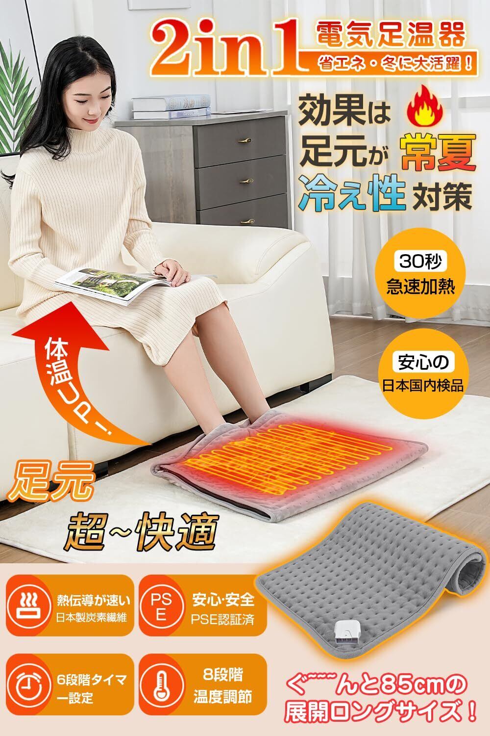 電気足温器 2in1フットウォーマー 【2025 両面発熱 日本製ヒーター 足温器 8段階温度調節 6段階タイマー 電気ホットマット 睡眠モード搭載 ダニ退治 洗濯可能 55*48cm 男女兼用 暖房器具 冷え対策 PSE認証済み 日本語説明書付き [日本国内ブランド正規品]