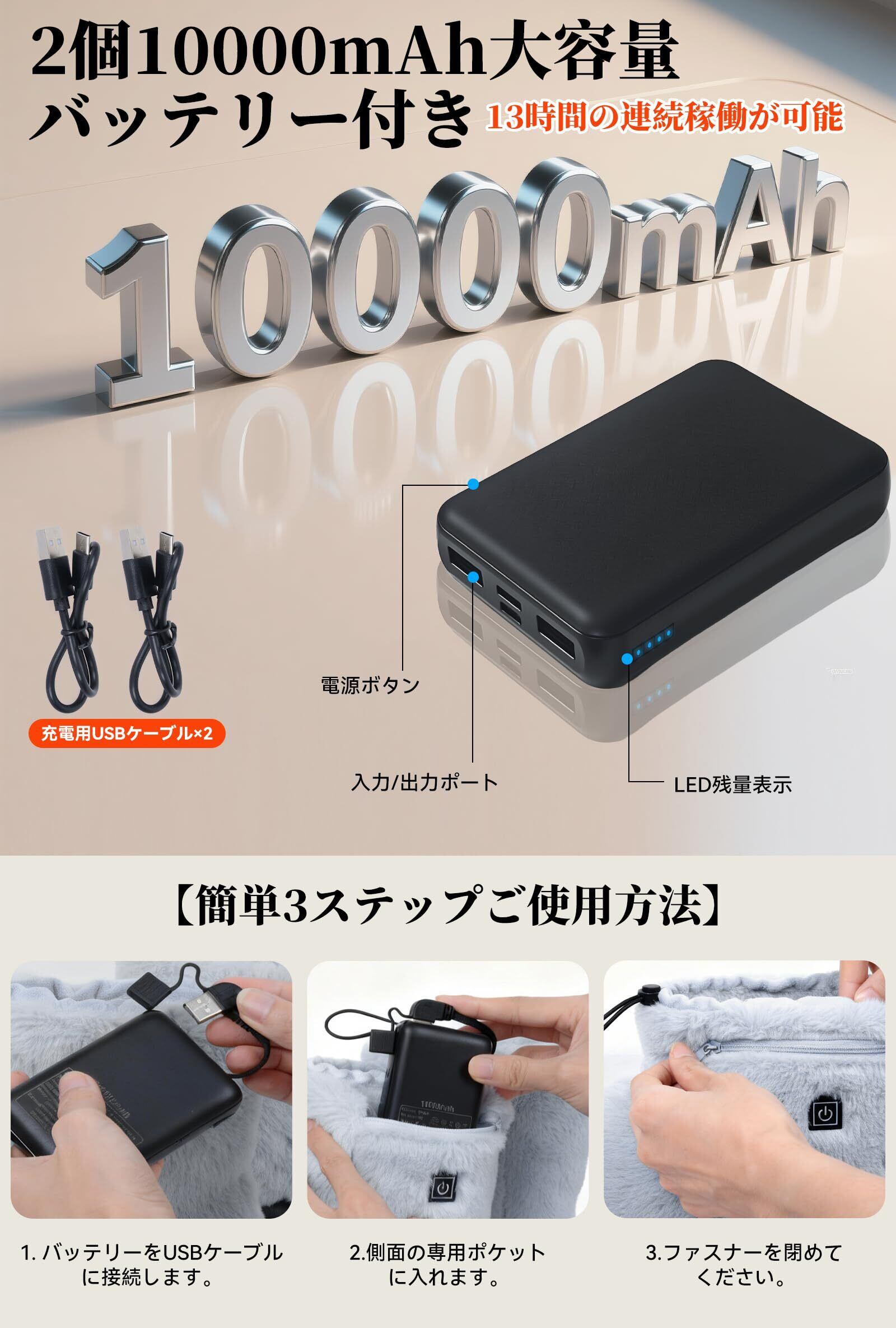 電気スリッパ フットウォーマー 足温器 Ninonly コードレス 電気足温器 足元ヒーター 速熱 2個10000mAhバッテリー付き 3段階温度調節 過熱保護 洗濯可能 省エネ 冷え対策 お宅用/オフィス用 自由に歩ける 滑り止め 男女兼用 USB給電式 PSE認証済み 日本語取扱説明書付き(グレー)