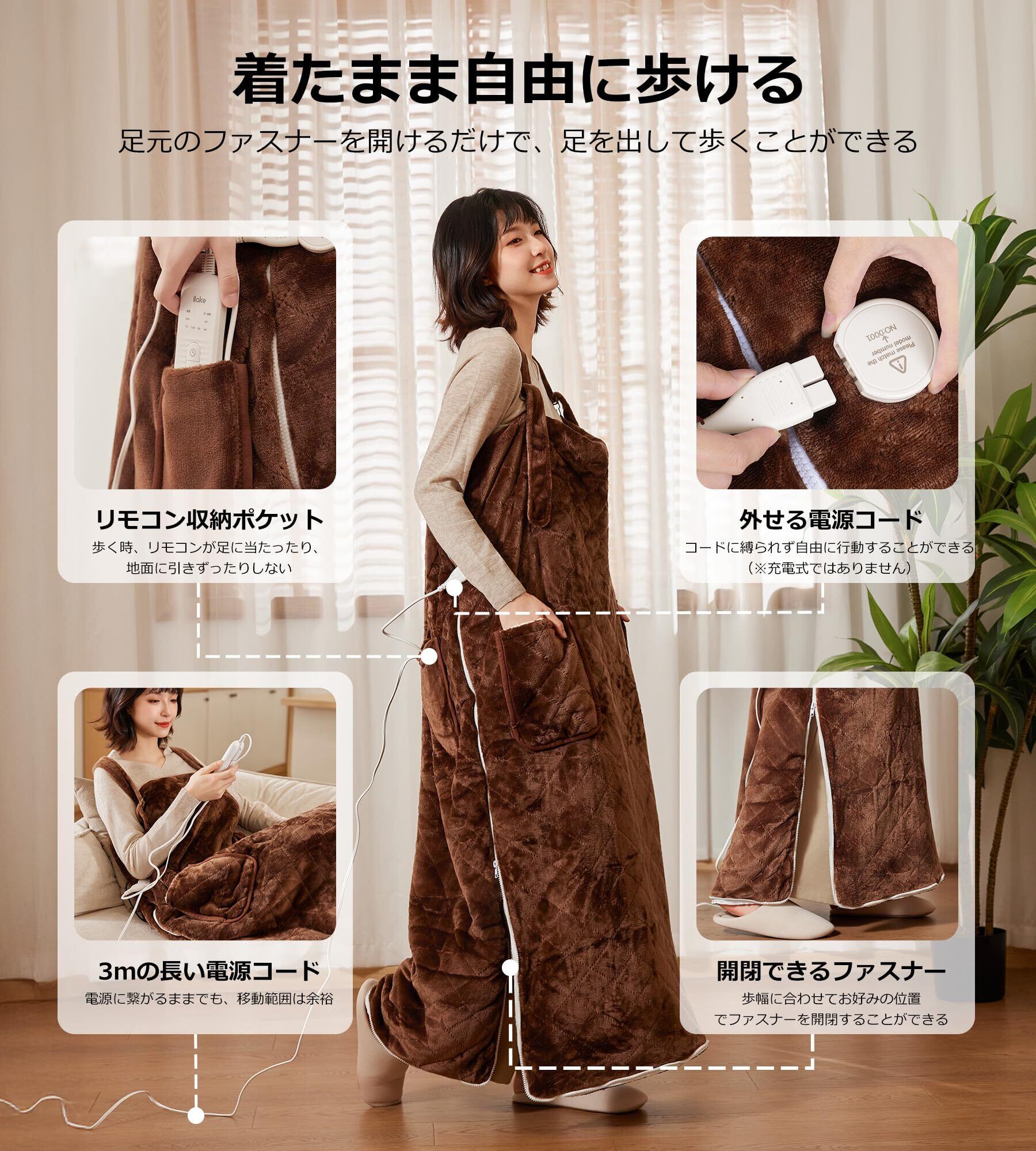 着るこたつ 歩ける 足入れヒーター 電気毛布 着る 敷き 掛け 洗える【足元から胸まで前面加温】7段階温度調節 6段階切タイマー ダニ退治機能 55W 省エネ 一人用 コタツ メンズ レディース 厚手素材 着る毛布 電気 足温器 着るこたんぽ 足元 あったかグッズ 防寒対策(適応身長158-180cm)