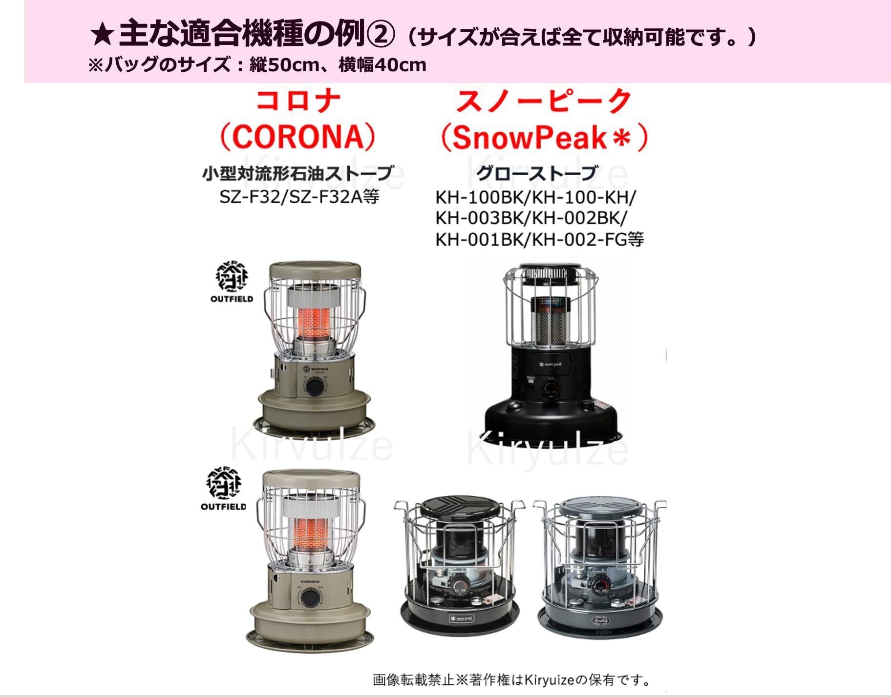 対応機種:トヨトミレインボーストーブ、スノーピークグローストーブ、パセコ、コロナSZ-F32、イワタニマル暖、アラジンAKP-U2801/CAP-U2801等の各種ストーブに対応