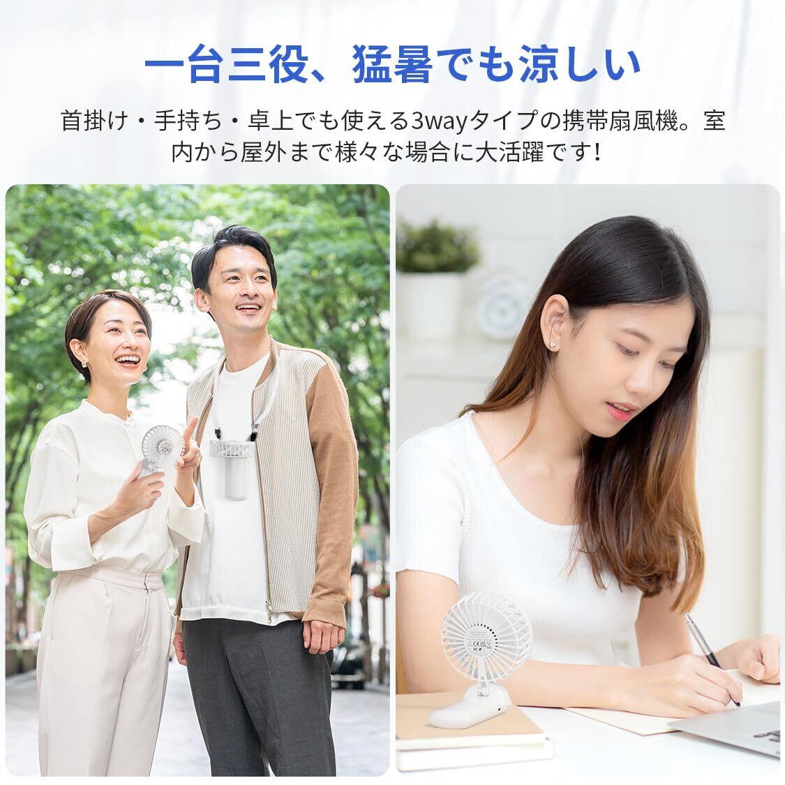【手持ち/首掛け/卓上3in1携帯扇風機登場】psecici携帯扇風機は手持ち扇風機・卓上扇風機・首掛け扇風機3つの機能を同時に兼ね備えています。✨扇風機本体にストラップ取り付け穴を備え、付属のストラップと併用すると首掛け扇風機として使え、両手が解放するため、長時間使っても疲れにくく、作業中やスポーツなどの場合に勧めします。【180°折り畳め】伝統の卓上扇風機と違う、の扇風機は折り畳むことで卓上機能を実現します。上下方向に180°折り畳む可能、自分の好みに合わせて角度を調整できます。️暑い季節、ちょっとしたお出かけから野外イベントまで活躍するハンディ扇風機です。注意️充電中に以下の事を守ってください:①必ず付属の充電ケーブルをご使用ください。②アップルの電源アダプターをご使用しないでください。③必ず5v/2Aもしくは5v/1Aの外部電源と接続してください。