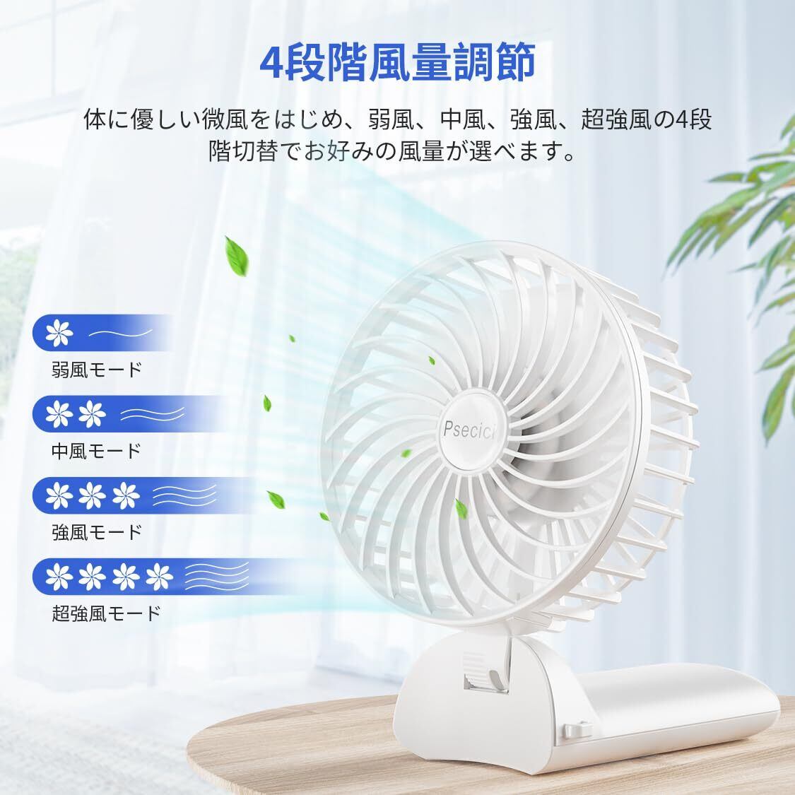 Psecici携帯扇風機 ハンディファン 手持ち扇風機 充電式USB扇風機 小型 静音 4段階風量調節 7枚羽根 手持ち 卓上 首掛け せんぷうき ミニファン 熱中症対策 折り畳み ストラップ付き (ホワイト)