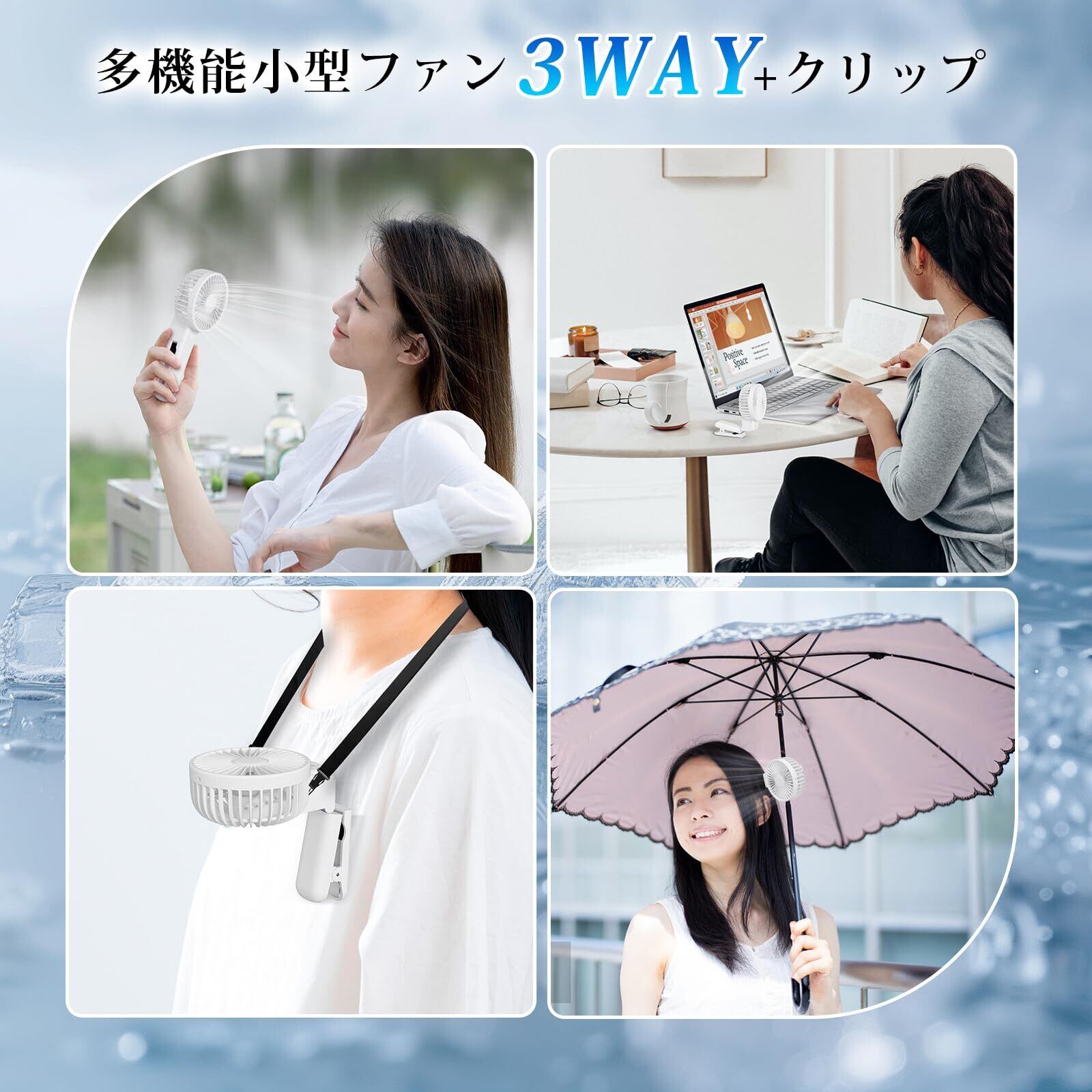 ハンディファン クリップ 日傘 携帯【2025最新設計 扇風機 大風量 静音】 150g超軽量 ハンディ 扇風機 クリップ/卓上/手持ち/首掛け対応 小型 風量3段階調整 Type-C急速充電 ミニファン 持ち運びに便利 熱中症 暑さ対策 オフィス スポーツ観戦 花火大会 父の日ギフト 日本語取扱説明書