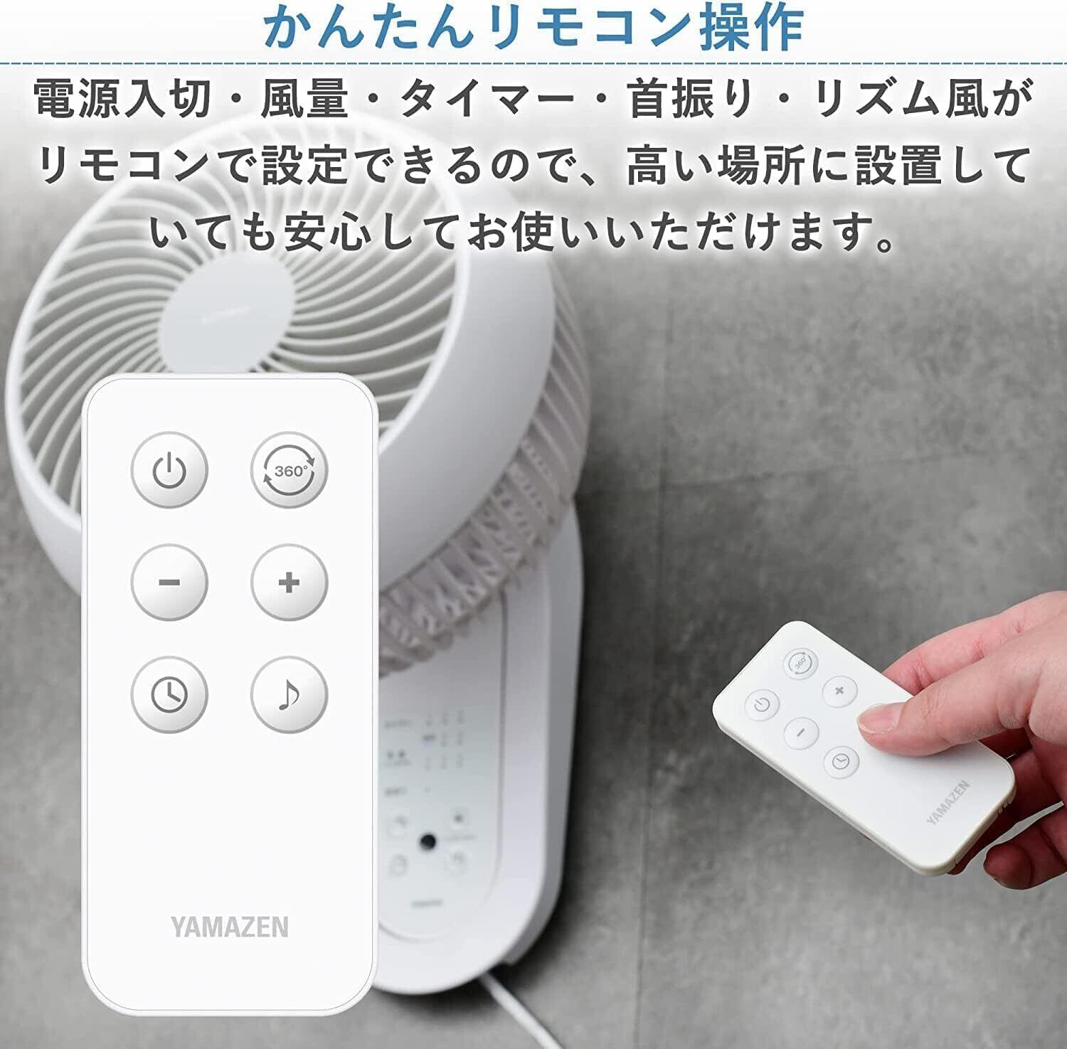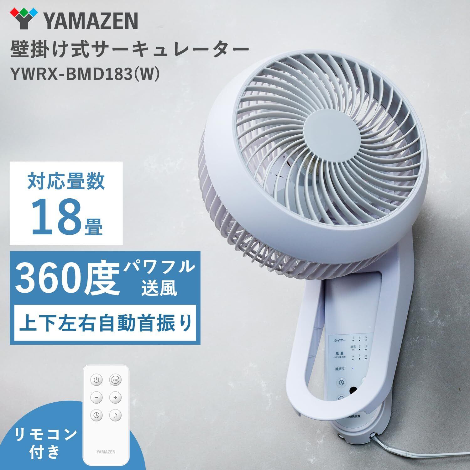 \【◆山善 壁掛式 洗える サーキュレーター DCモーター 静音 18畳 360度首振り 風量6段階調節 入切タイマー リモコン付き お手入れ簡単 パワフル送風 ホワイト YWRX-BMD183(W) | 快適な空間を広げる!】/