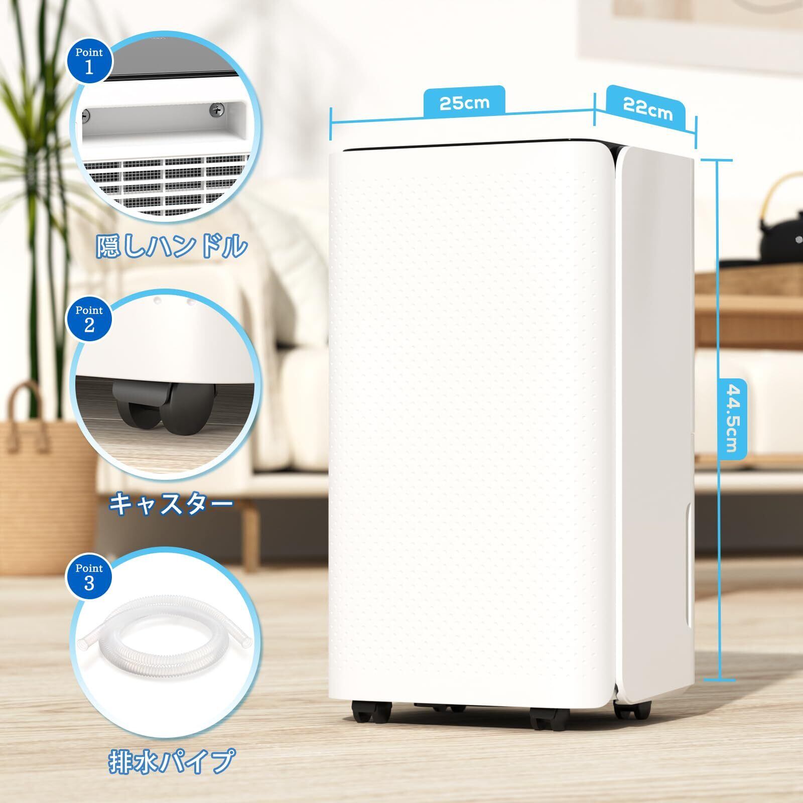 【コンパクトな外観デザイン】小型除湿器はシンプルでスタイリッシュな外観を採用しています。余分な外線と体積をできるだけ削減し、家庭のストレージスペースを節約しました。部屋のどこにでも置けるので、収納に便利です。
