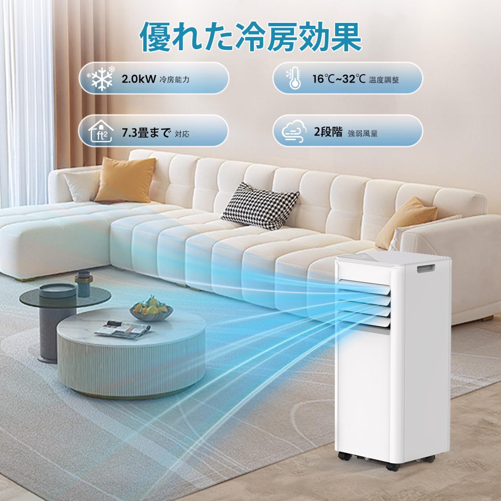 COWSARスポットクーラー 2.0kW 6-8畳対応 ポータブルエアコン 自動/冷房/除湿/送風 1日20L除湿 2階段風量 風向き調整 60°左右ルーバー 24時間タイマー おやすみモード 省エネ 工事不要 ポータブルクーラー 移動式エアコン