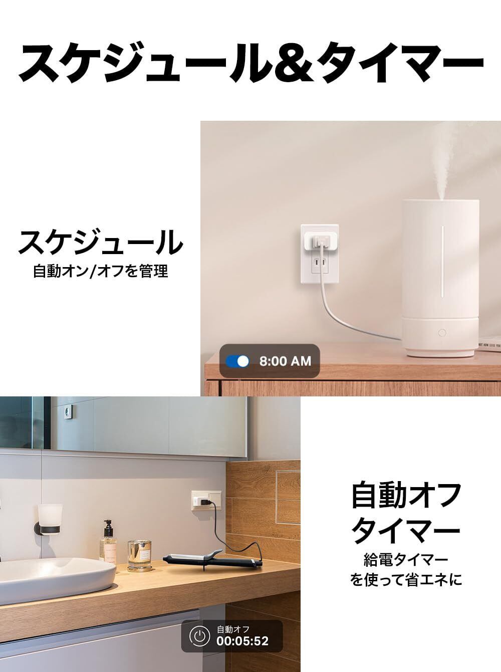 スケジュール設定ができ、あらかじめ決めた時間に自動で家電の電源を入れたり切ったりできます。例えば「夜8時に電気をつける」「朝7時にエアコンをオン」と設定することで、日常生活がさらにスムーズに!忙しい朝や帰宅時も安心です。