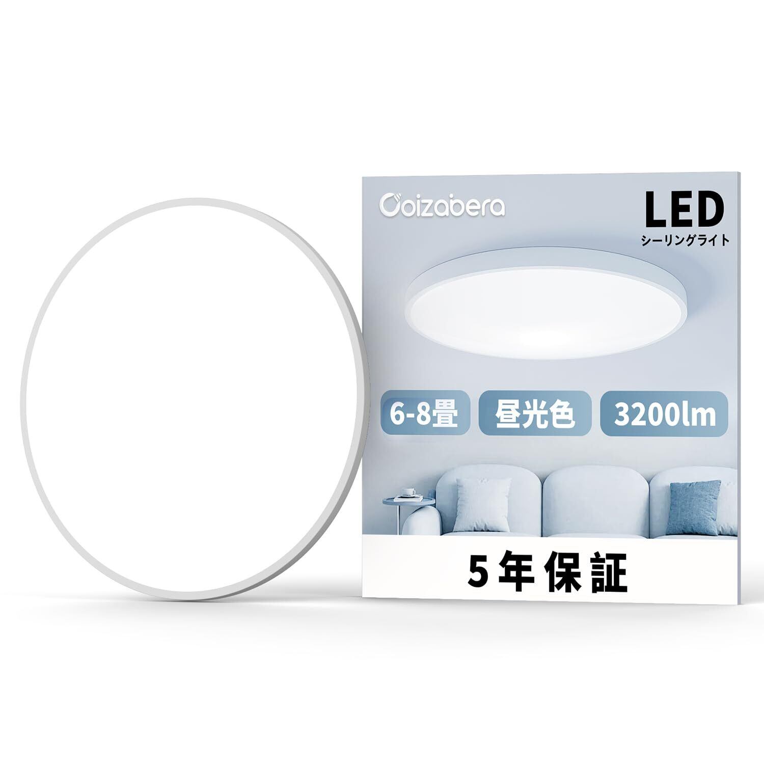 LEDシーリングライト 6畳 8畳 3200lm 28W 昼光色 薄型 天井照明 電気 おしゃれ ledライト 蛍光灯 スイッチで操作 Ceiling Light 6畳 8畳 寝室/玄関/ベランダ/リビング/キッチン適用【リモコンなし】
