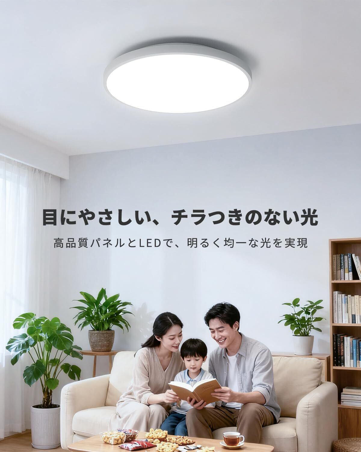 【演色性Ra90・色が美しく見える照明】演色性(CRI)90以上で、肌・食べ物・服の色をより自然に再現。高演色のLEDシーリングライトは、照明としての質にもこだわりたい方におすすめ。リビング・寝室・ダイニング・キッチンなど、さまざまな空間にマッチします。