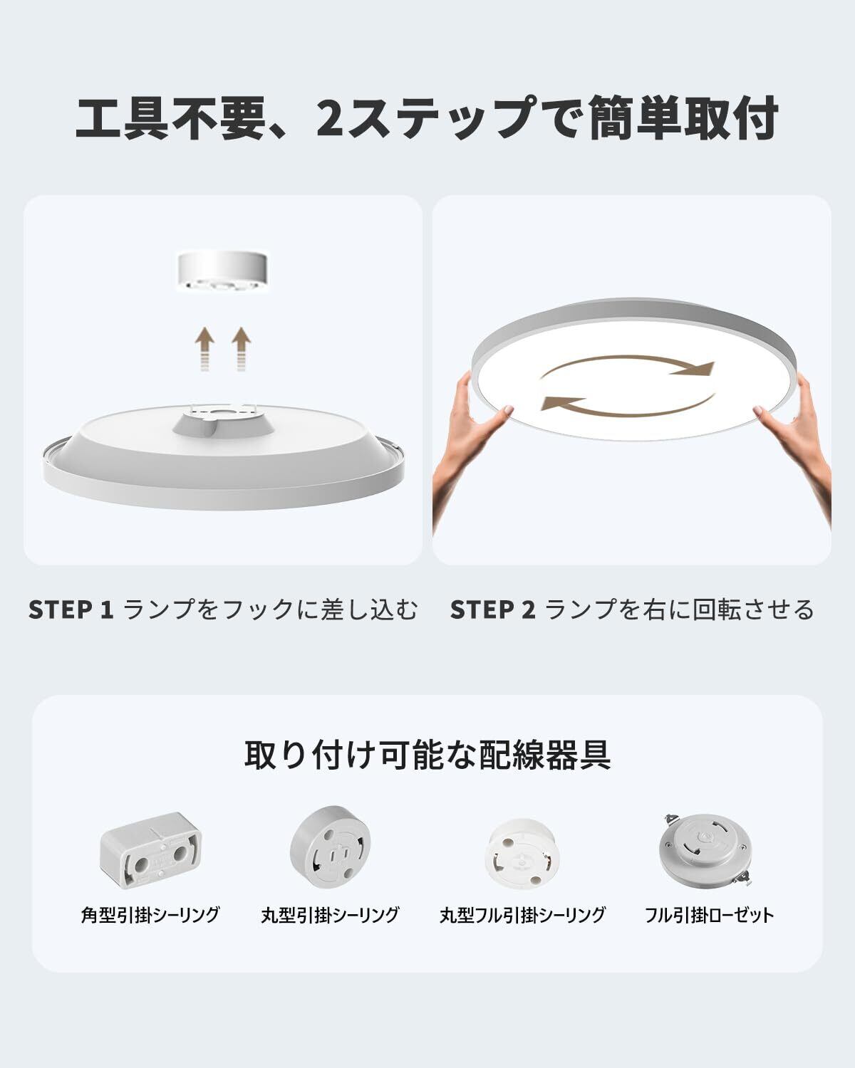 【工具不要の簡単取付け・初心者でも安心】取り付けは非常に簡単。器具本体とアダプターが一体型なので、天井の引掛けシーリングに差し込んで回すだけ。工具や配線作業は一切不要で、初めての方でも約1分で設置完了できます。