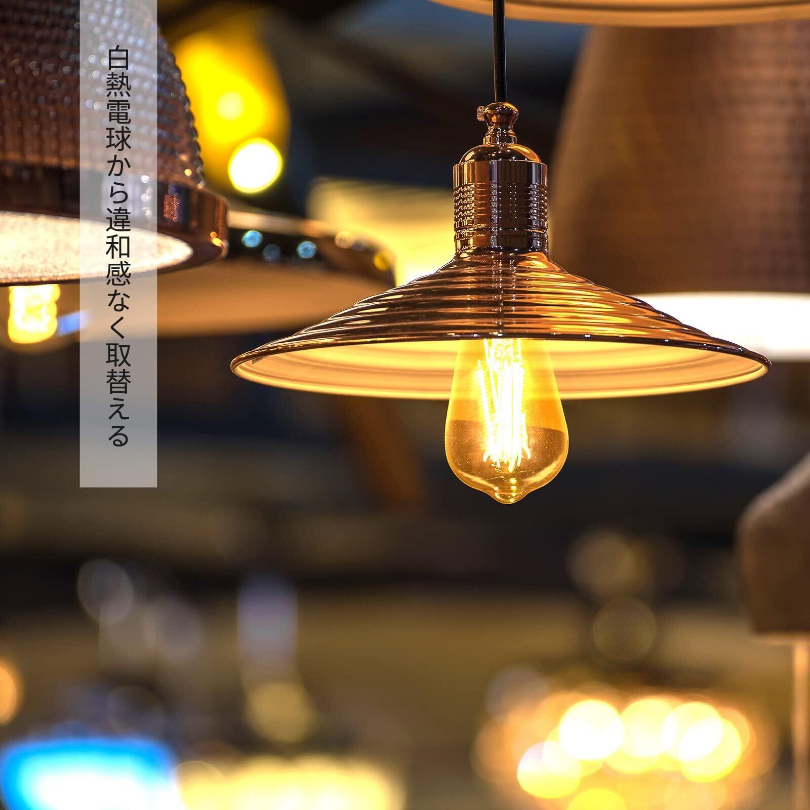 【レトロでおしゃれなデザイン】美しい琥珀色が落ち着いた空間を作り、アンティーク照明との相性が抜群!外から電球自体が見えるデザインでありながら、フィラメント相当部分が大きく輝き、照明のデザイン性を損ないません。リラックスした空間を作り出すのにぴったりのLED電球で、お気に入りの照明器具に取り付けるだけでレトロな雰囲気に