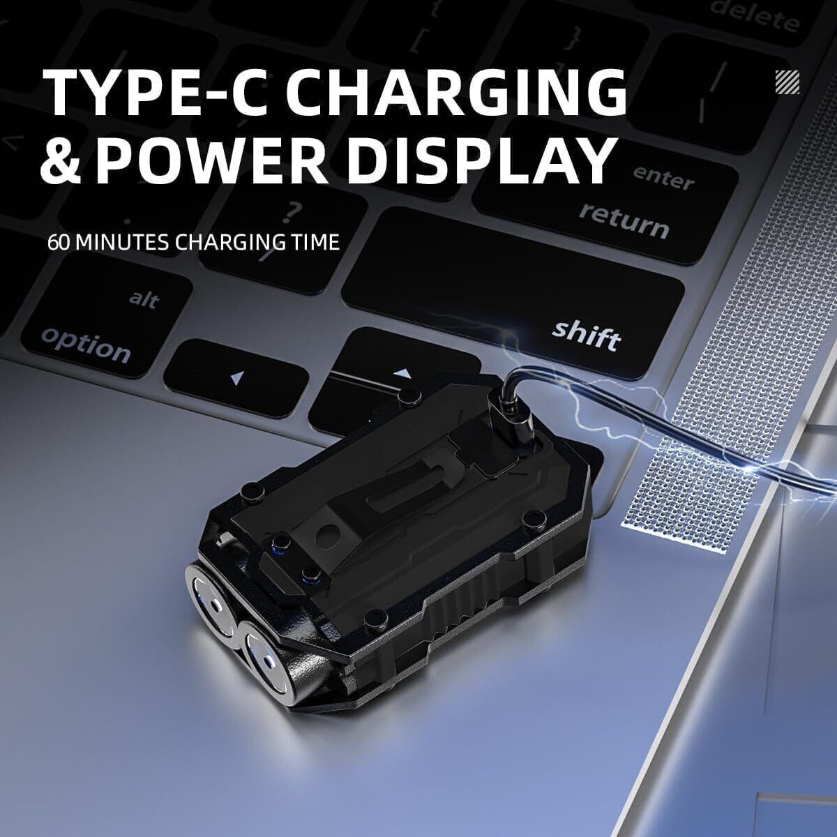 【USB充電式&長時間使用】500mAhの充電式リチウム電池を内蔵し、Type-Cケーブルで簡単に充電可能。点灯モードにより、2時間から22時間程度の使用ができます。充電中はブルーライトで状態を確認できます。