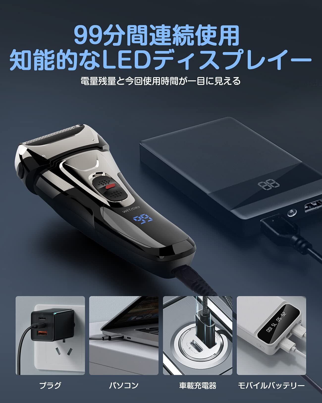 特徴 強力モーター,高速充電式,Ledディスプレイ,防水,着脱式ヘッド,握りやすい,軽量