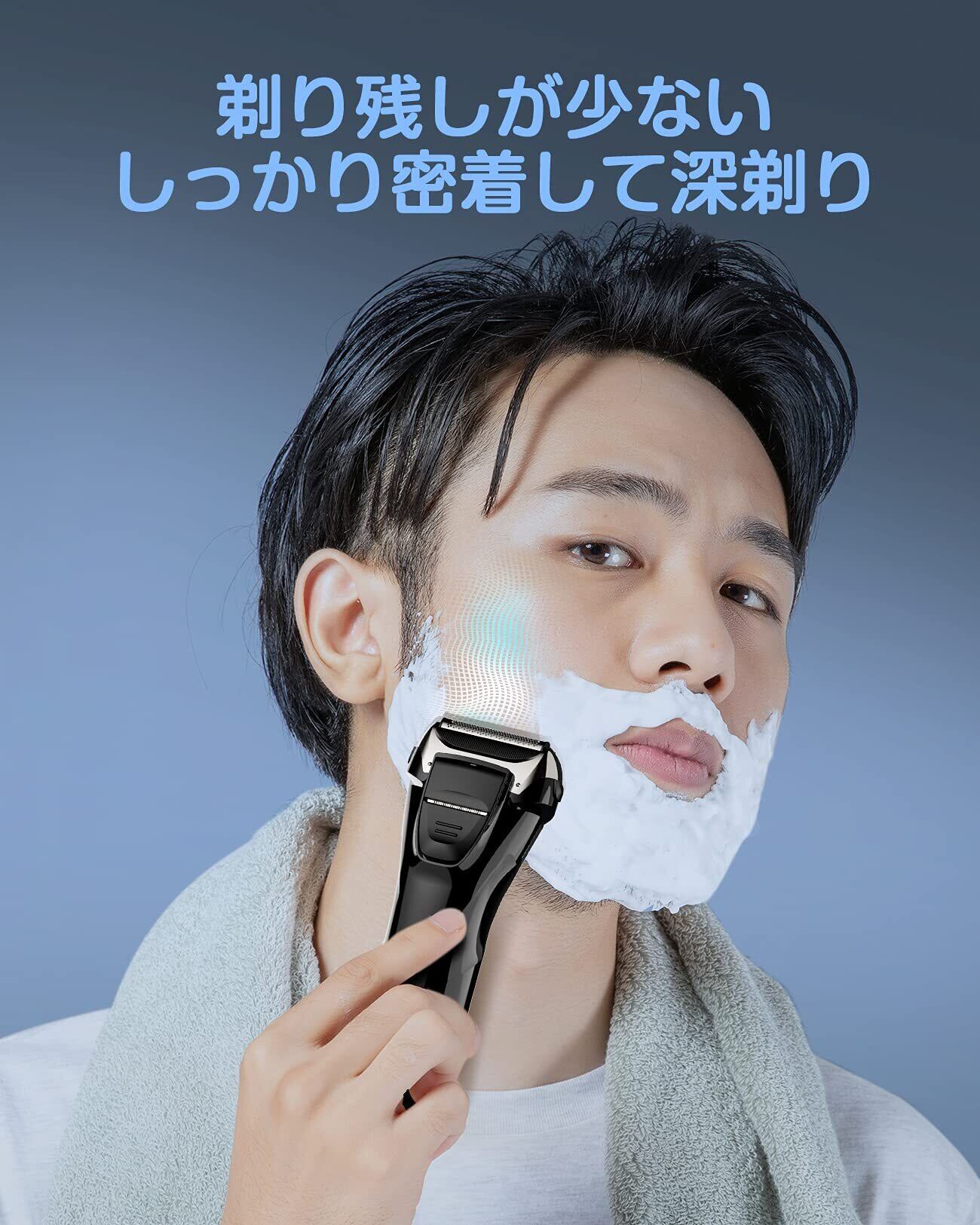 「シェーバー メンズ 髭剃り 電動」は、肌に優しい3枚刃を搭載。上下左右に動くフローティングヘッドが、顔の contours にぴったりフィットし、剃り残しを防いでスムーズにシェービングを実現します。肌への負担を軽減する設計で、毎日のひげ剃りが快適に行えます。