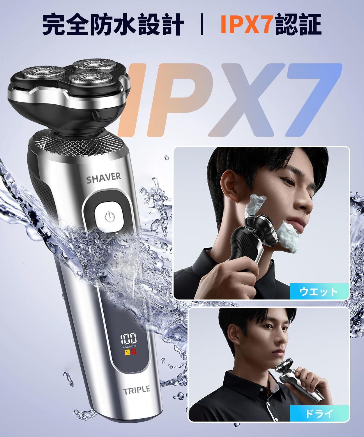 特徴 IPX7完全防水&ドライ&ウェット両用, USB Type-C&5min急速充電, 電気シェーバー+ バリカン+鼻毛カット