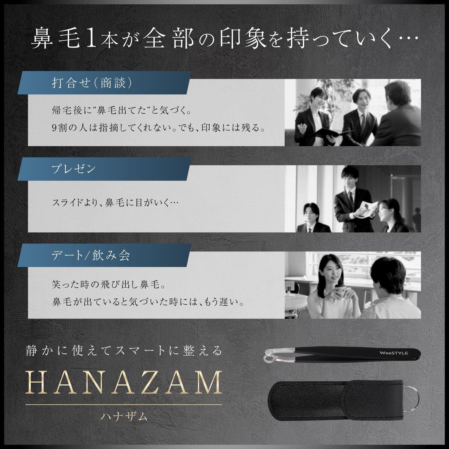 「HANAZAM 鼻毛カッター」は、使いやすい手動タイプで、誰でも簡単に鼻毛のお手入れができます。特に、精密な刃が鼻腔にフィットし、より安全で快適に処理できるため、初めての方にもおすすめです!