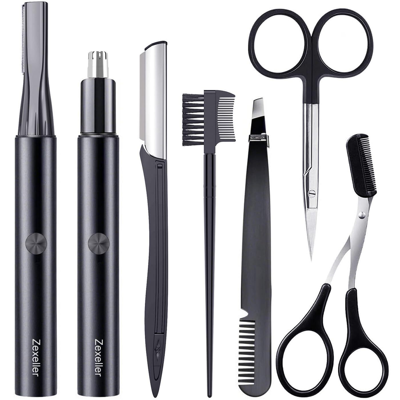 【メンズ美容師監修】新登場&1台多役 眉毛シェーバー セット USB充電式 鼻毛カッター 眉毛カッター 眉ハサミ・コーム付属 耳毛処理 産毛用(顔・脇・脚) 水洗い可能 安全設計 男女兼用 多機能電動 低騒音 日本語説明書付き プレゼント対応(ブラック)Eyebrow
