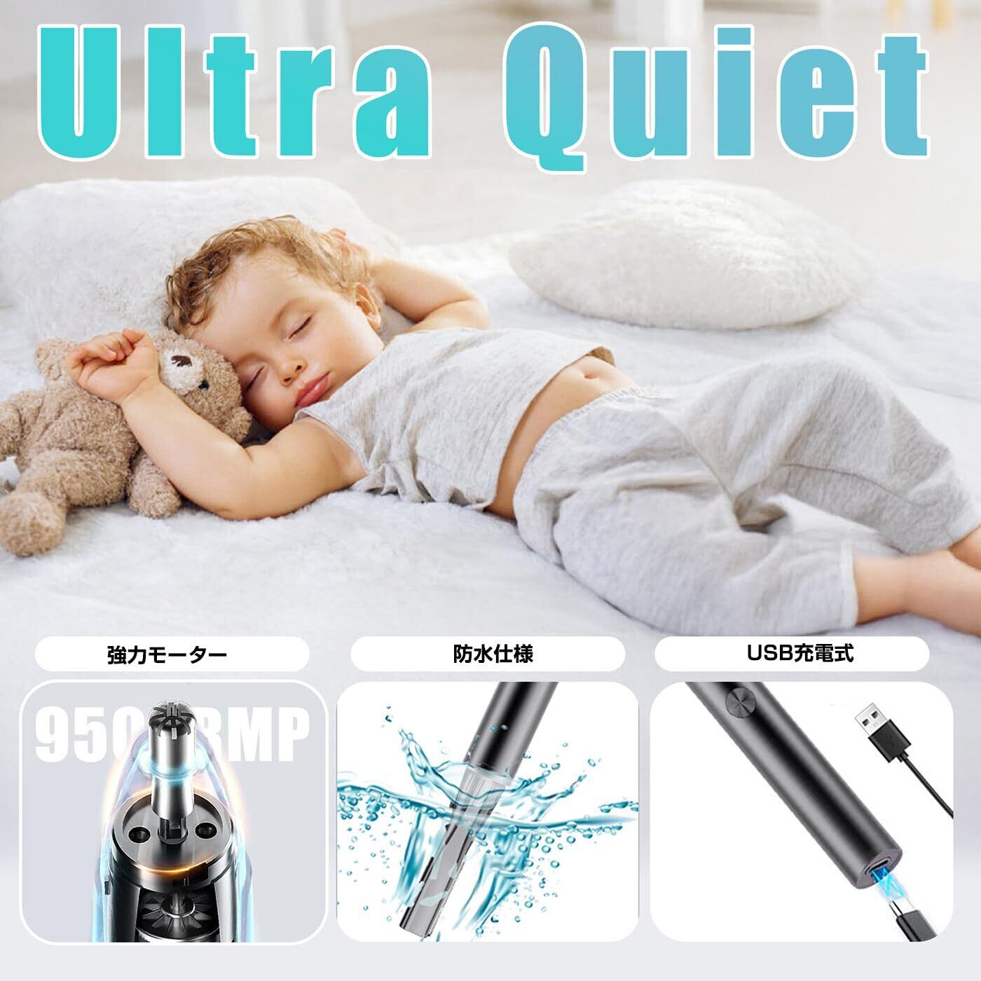 特徴 USB充電, エルゴノミク, トラベルサイズ, 低騒音, 防水
