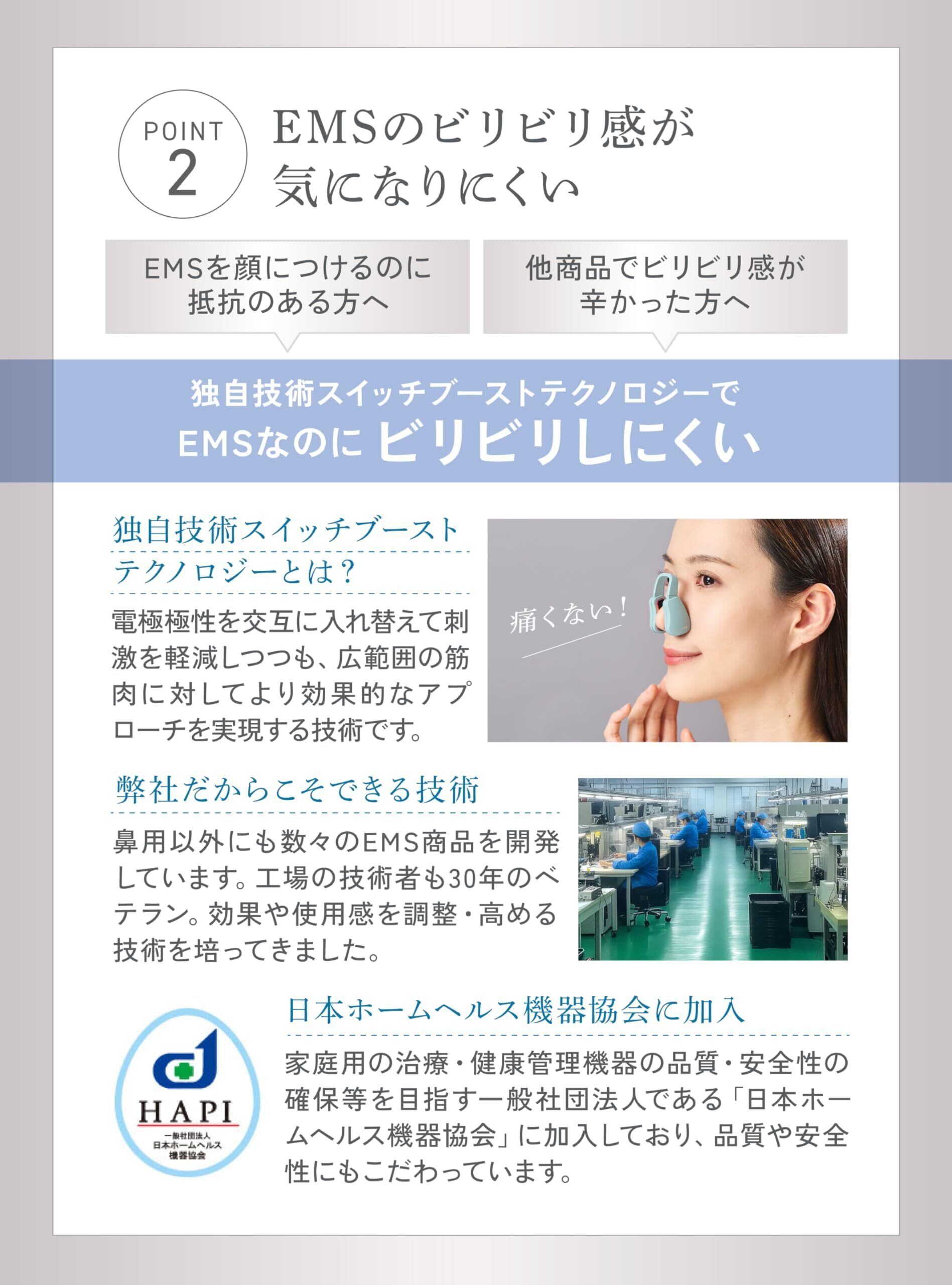 雑誌arで紹介!鼻用美顔器 ビリビリしにくい EMS市場最多50種類の周波数 ノーズスタイル