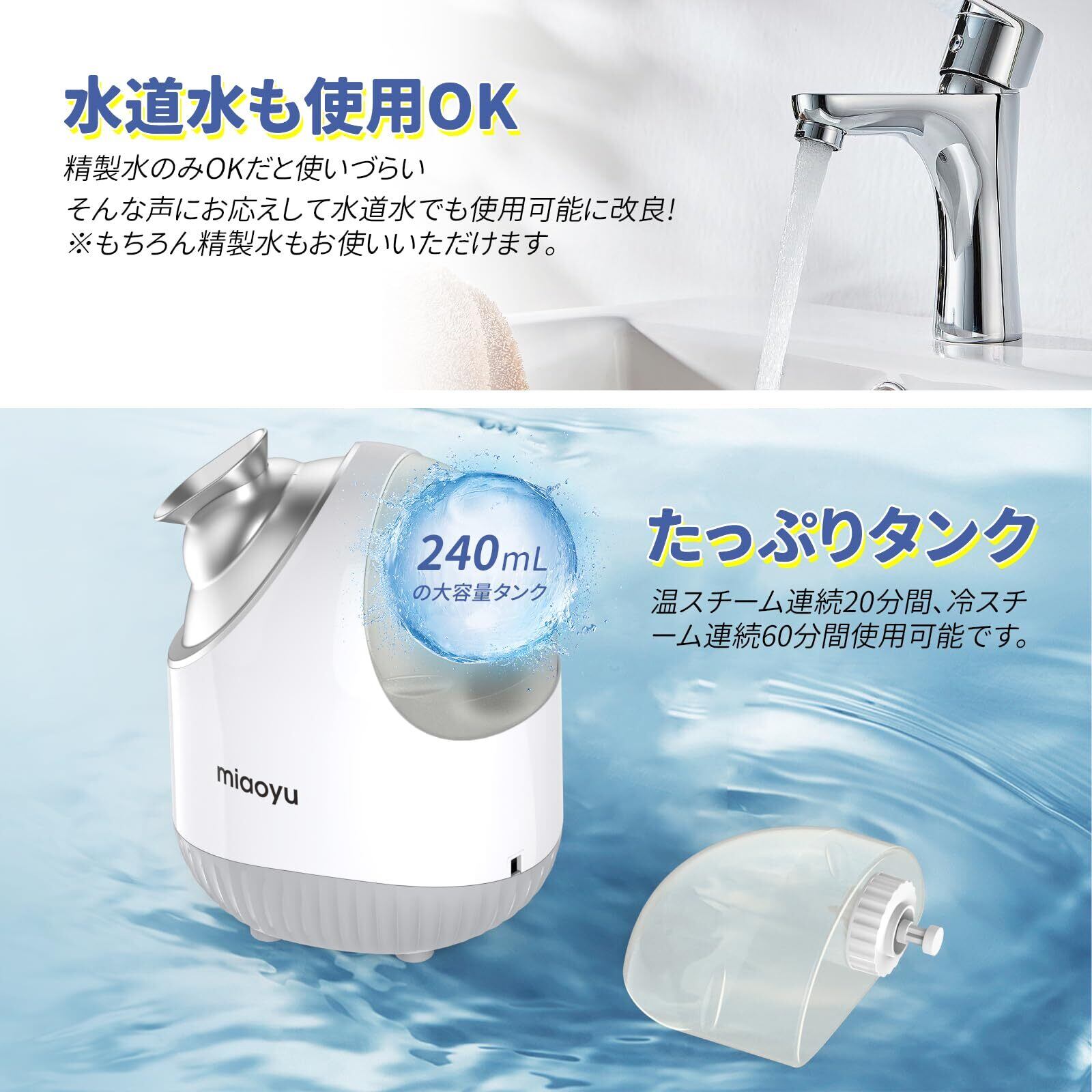 【冷ミストで温冷ダブルケア】miaoyuスチーマーはナノ冷ミスト・温スチーム・冷温ノーマル3種類のモードを搭載、自宅で手軽にエステ体験ができます。スチーマー美顔器起動後急速加熱のPTC加熱で水滴と結合しにくく、他より安定感のあるミストを生成します均一の40℃に肌温度を上げる温熱スチーム、毛穴が開きやすくなります、皮膚を柔らかくして潤すだけではなくて、顔のメイクアップの残りの部分をより深く洗浄するのに役立つ、美容スチーマー全肌質適用ですマスクをしながら美顔スチーマーを使うと、濡れて冷たくなったマスクシートの刺激が軽減され、柔らかいミストの中でリラックスしてスキンケアができるようになりました。温かいスチームで肌をやわらげ、最後に冷ミストで肌を引き締めることができます。