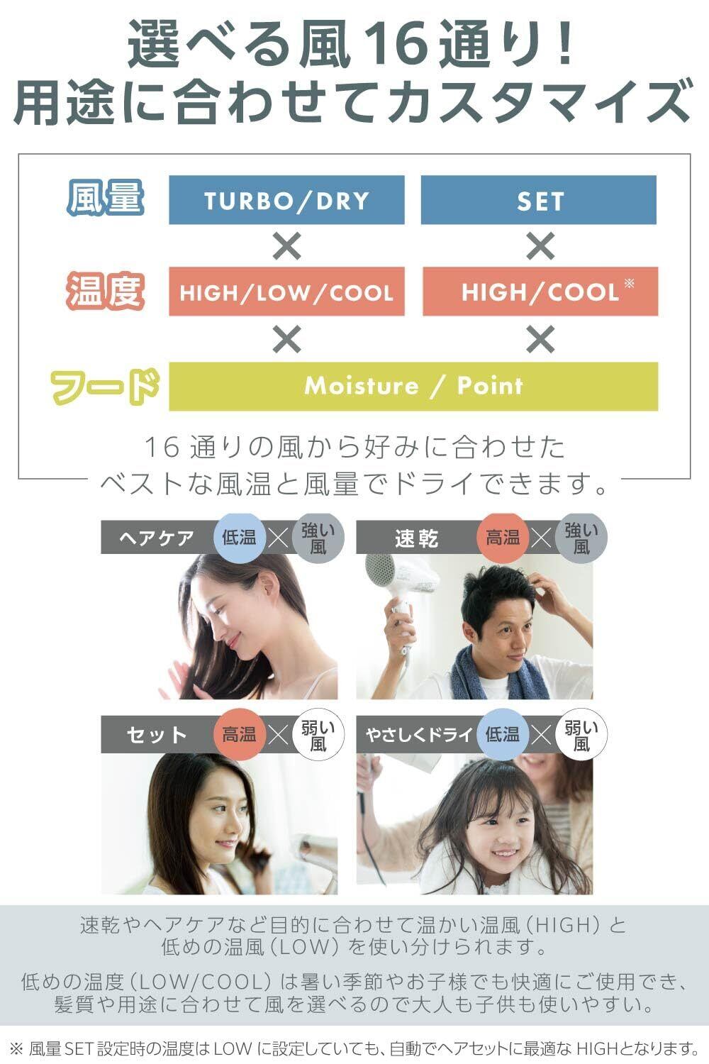 TURBO‐DRY‐SET 速乾からセットまで簡単に切替えできる、選べる3段階風量。